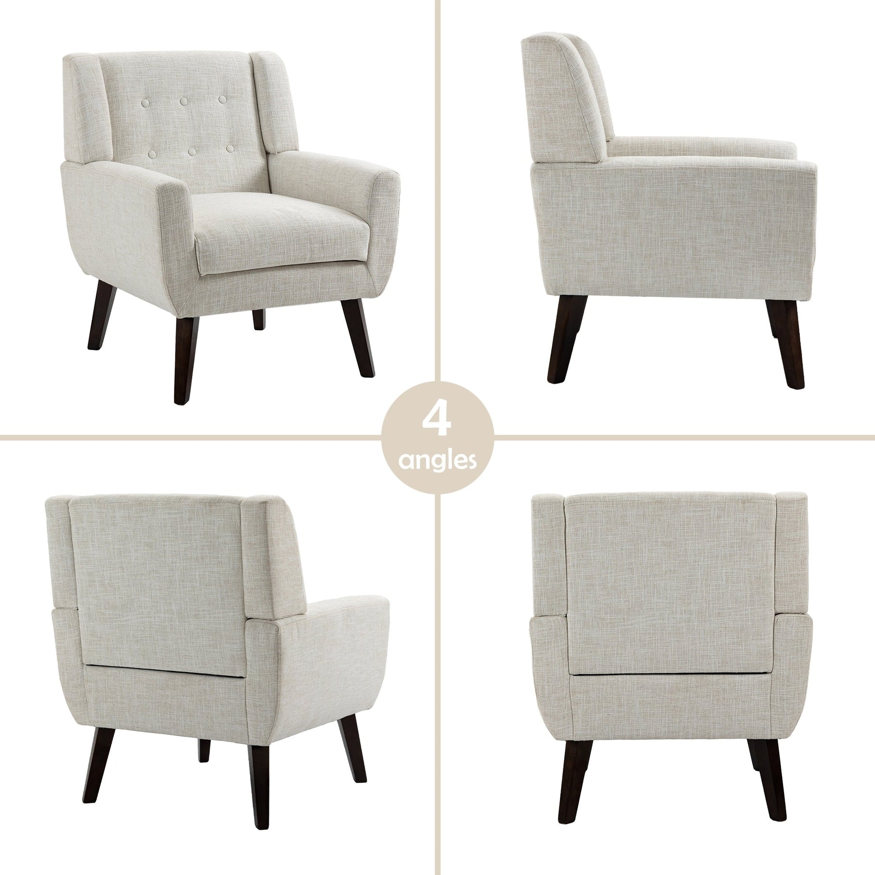 Ajoutez une touche de sophistication et de confort moderne à votre espace avec ce fauteuil d'appoint moderne en tissu aspect coton/lin. Ce fauteuil est doté d'une structure en bois massif, de pieds fuselés, d'un dossier à oreilles subtil et d'accoudoirs arrondis pour une sensation de détente. Revêtu d'un tissu aspect coton et lin de haute qualité, il allie confort et élégance. Il est idéal pour se détendre, comme lire, regarder un film, prendre un café ou discuter entre amis. Il peut même servir de mobilier de bureau pour les réunions d'affaires. Choisissez parmi une variété d'options : chaise, ensemble de chaises ou ensemble chaise et canapé.