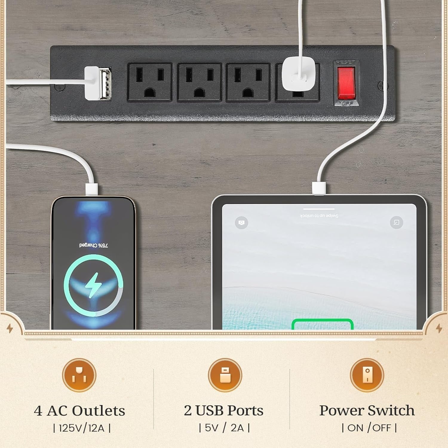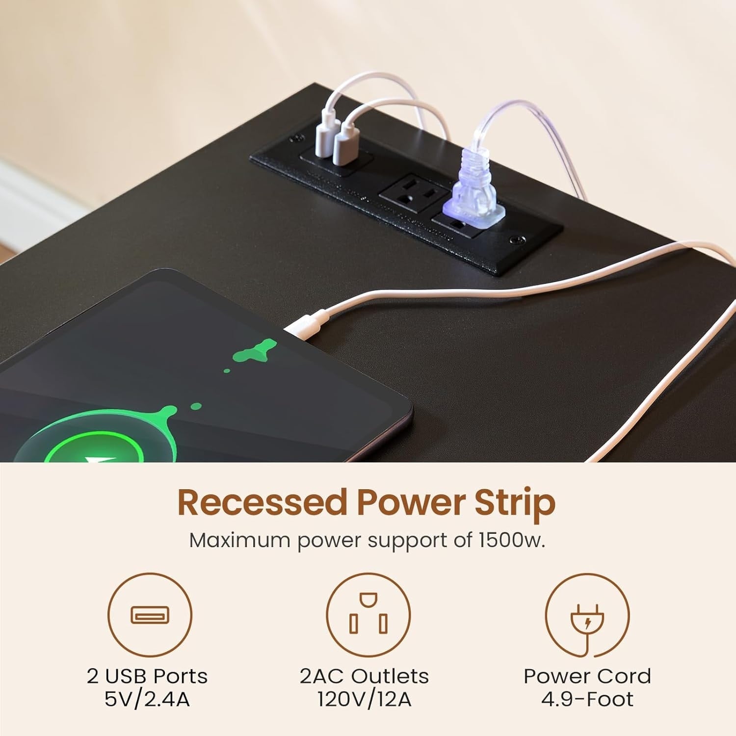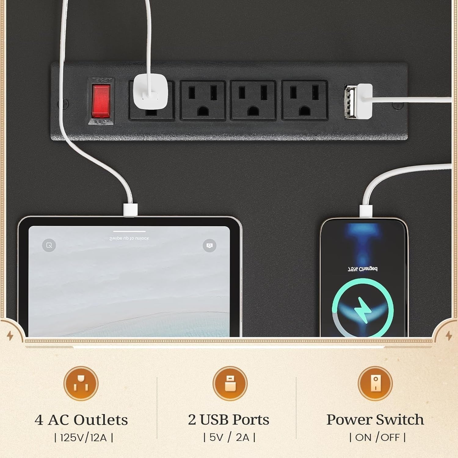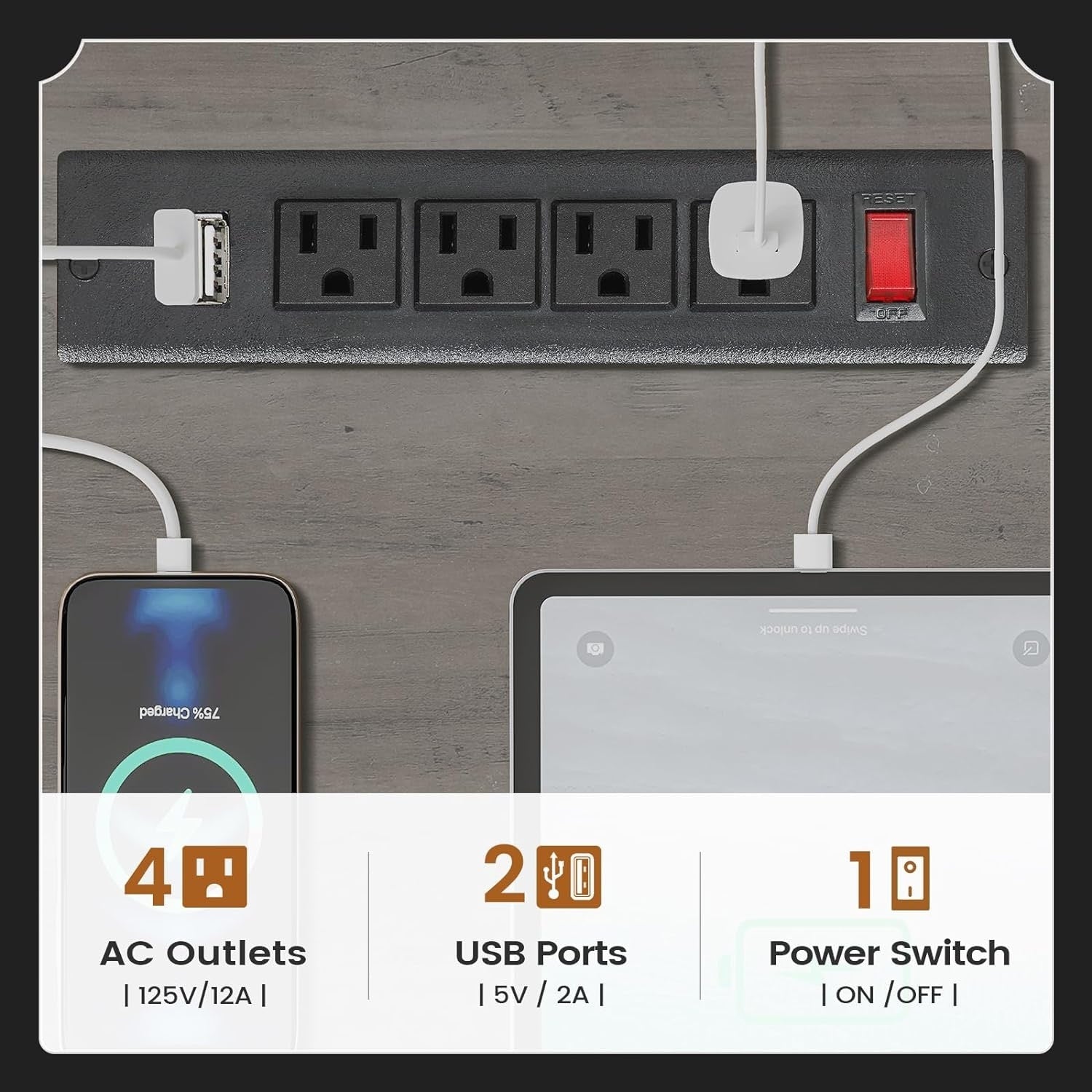 Prises de courant : ce bureau d'ordinateur est équipé de 4 prises secteur et de 2 ports USB pour recharger facilement votre matériel de jeu, votre tablette, votre imprimante ou votre téléphone. L'interrupteur permet de couper l'alimentation facilement et en toute sécurité, sans avoir à débrancher les appareils.