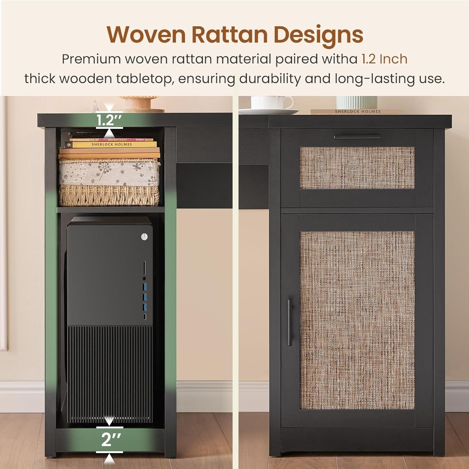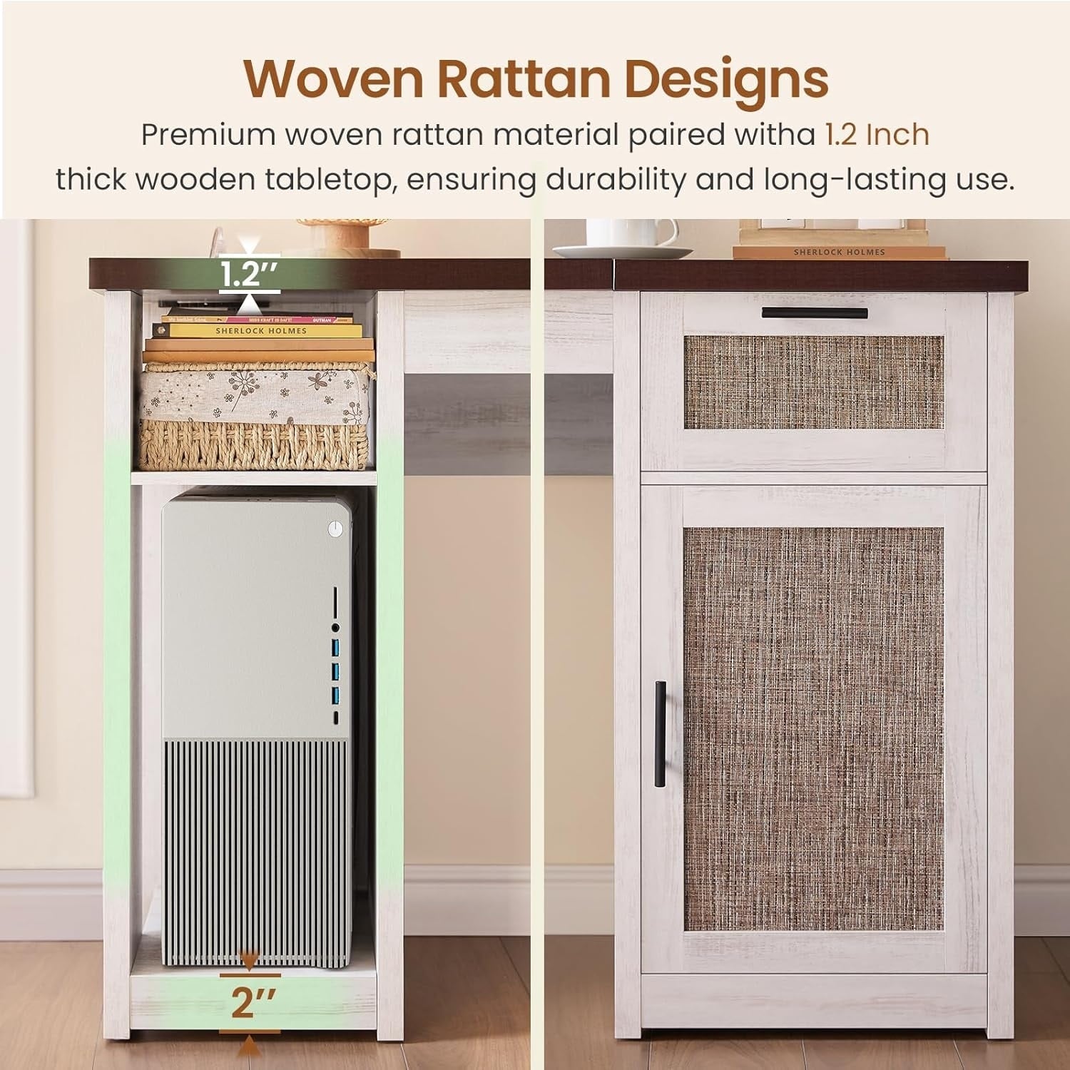 Construction solide et matériaux de haute qualité : Fabriquée en bois de haute qualité, sa structure robuste et son plateau épais assurent durabilité et stabilité. Les tiroirs et les rangements offrent une organisation pratique pour un espace de travail bien rangé.