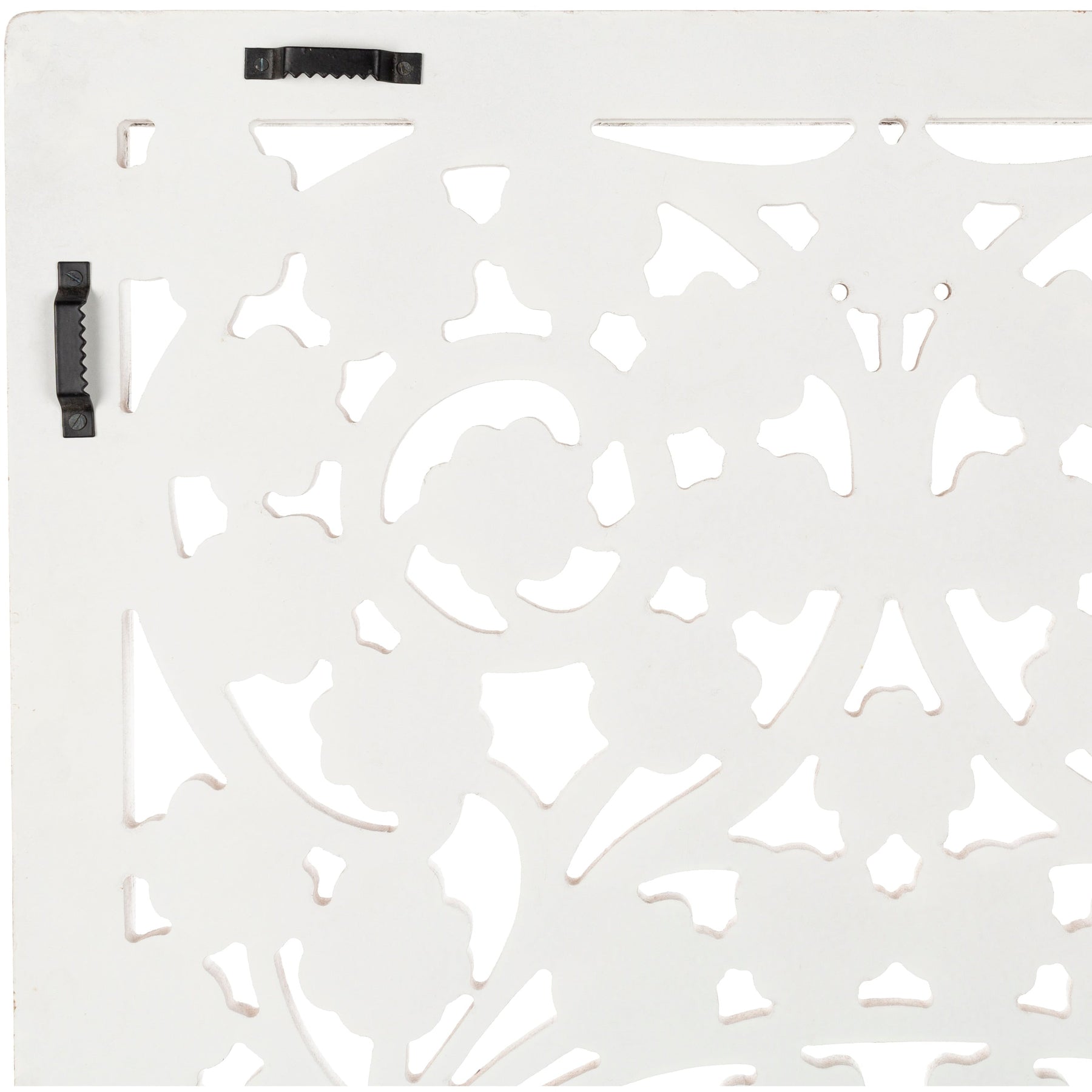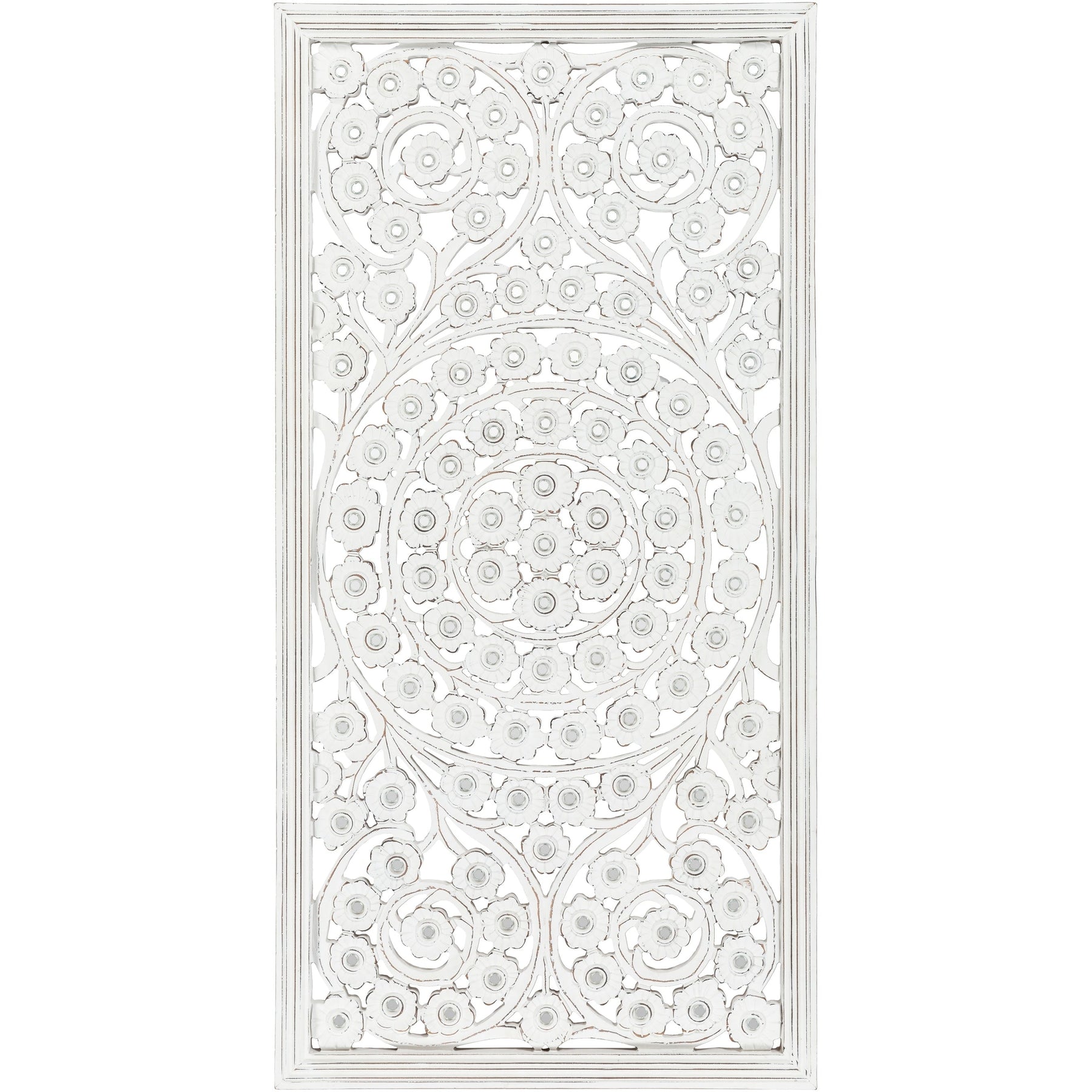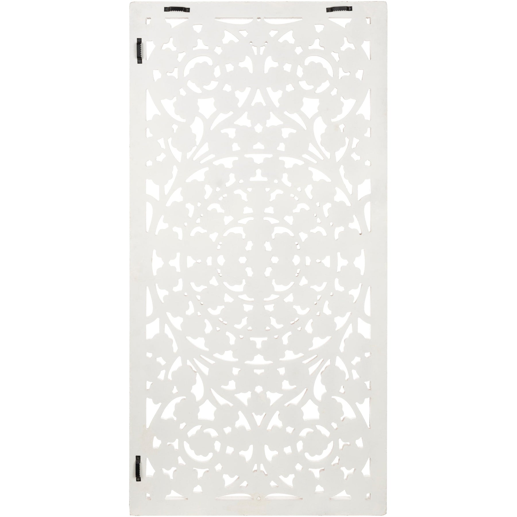 Apportez une touche d'ambiance internationale à votre intérieur avec ce magnifique panneau mural. Chaque panneau est sculpté à la main avec des détails raffinés et orné de l'art traditionnel indien du miroir. Sa finition blanche vieillie lui confère une touche contemporaine et polyvalente. Idéal pour un espace de vie, ce panneau peut être accroché verticalement ou horizontalement.