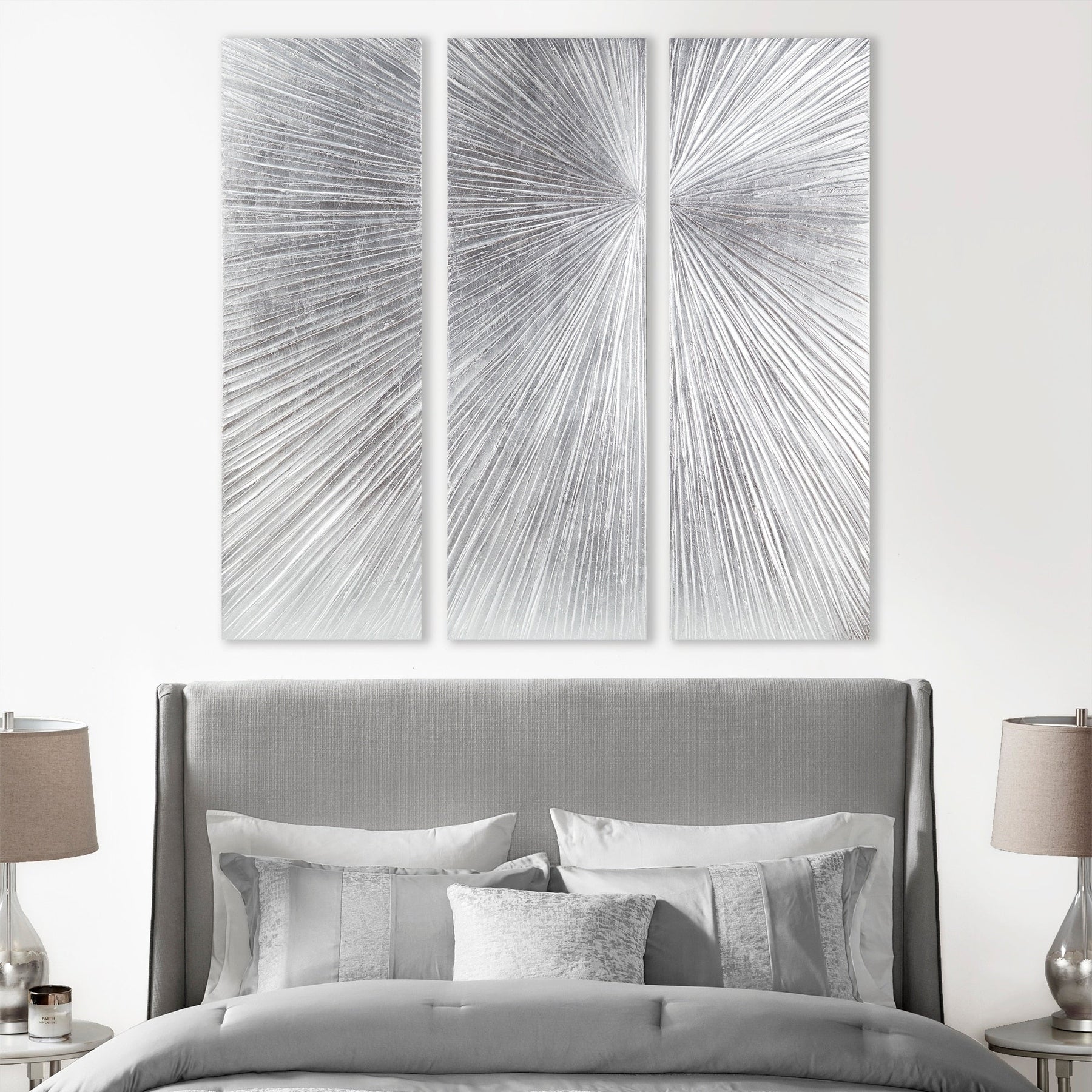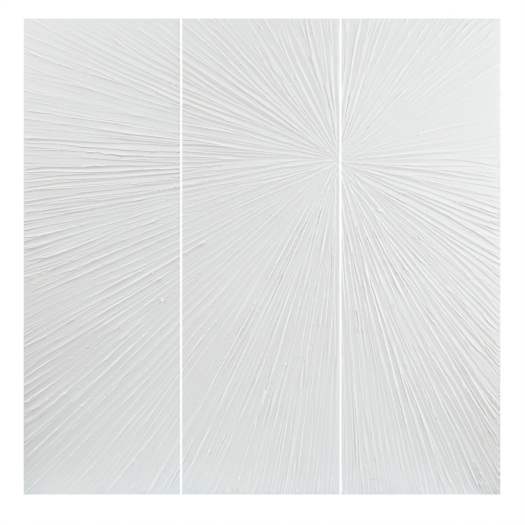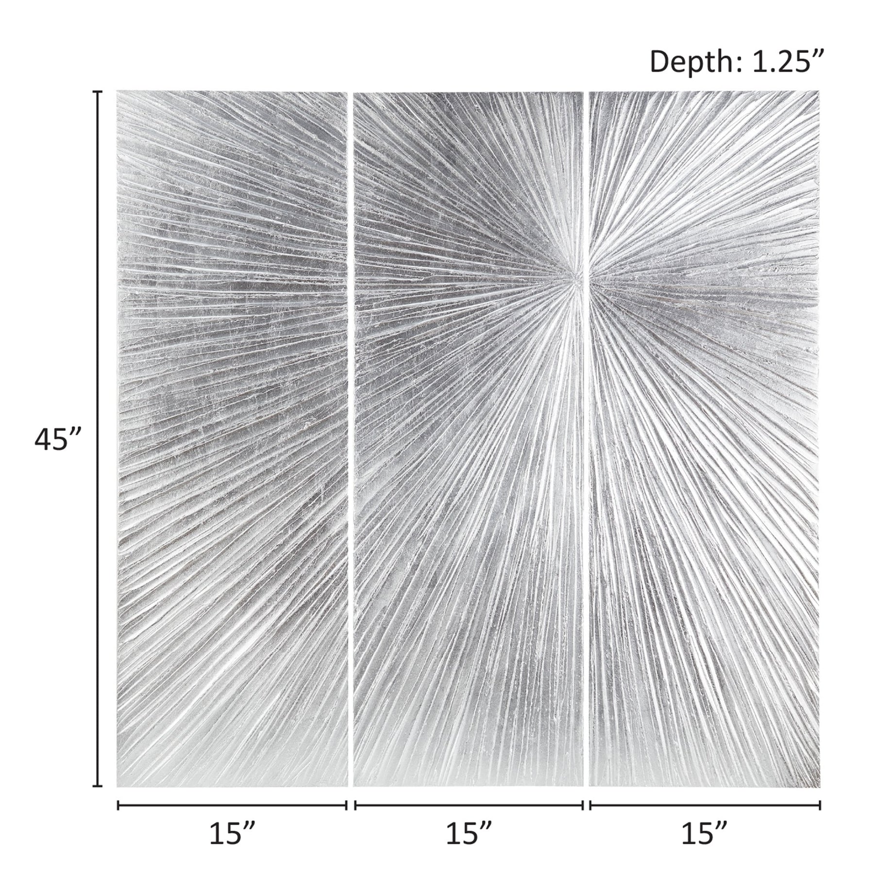 Illuminez votre espace avec l'élégance captivante du triptyque mural Sunburst peint à la main. Ce superbe ensemble de 3 pièces présente un motif abstrait et moderne de soleil, sublimé par une finition métallique dorée qui apporte chaleur et sophistication à n'importe quelle pièce. Fabriqué en résine dimensionnelle avec une texture riche, chaque panneau apporte une présence digne d'une galerie d'art à votre décoration. Chaque pièce est soigneusement conçue pour une suspension verticale grâce à des anneaux en D, facilitant ainsi l'installation. Que ce soit dans un salon, une salle à manger ou une entrée, ses tons dorés chatoyants et son design dynamique créent un point focal accrocheur. Transformez votre intérieur en un espace de luxe raffiné avec le triptyque mural Sunburst, reflet saisissant de l'art moderne.