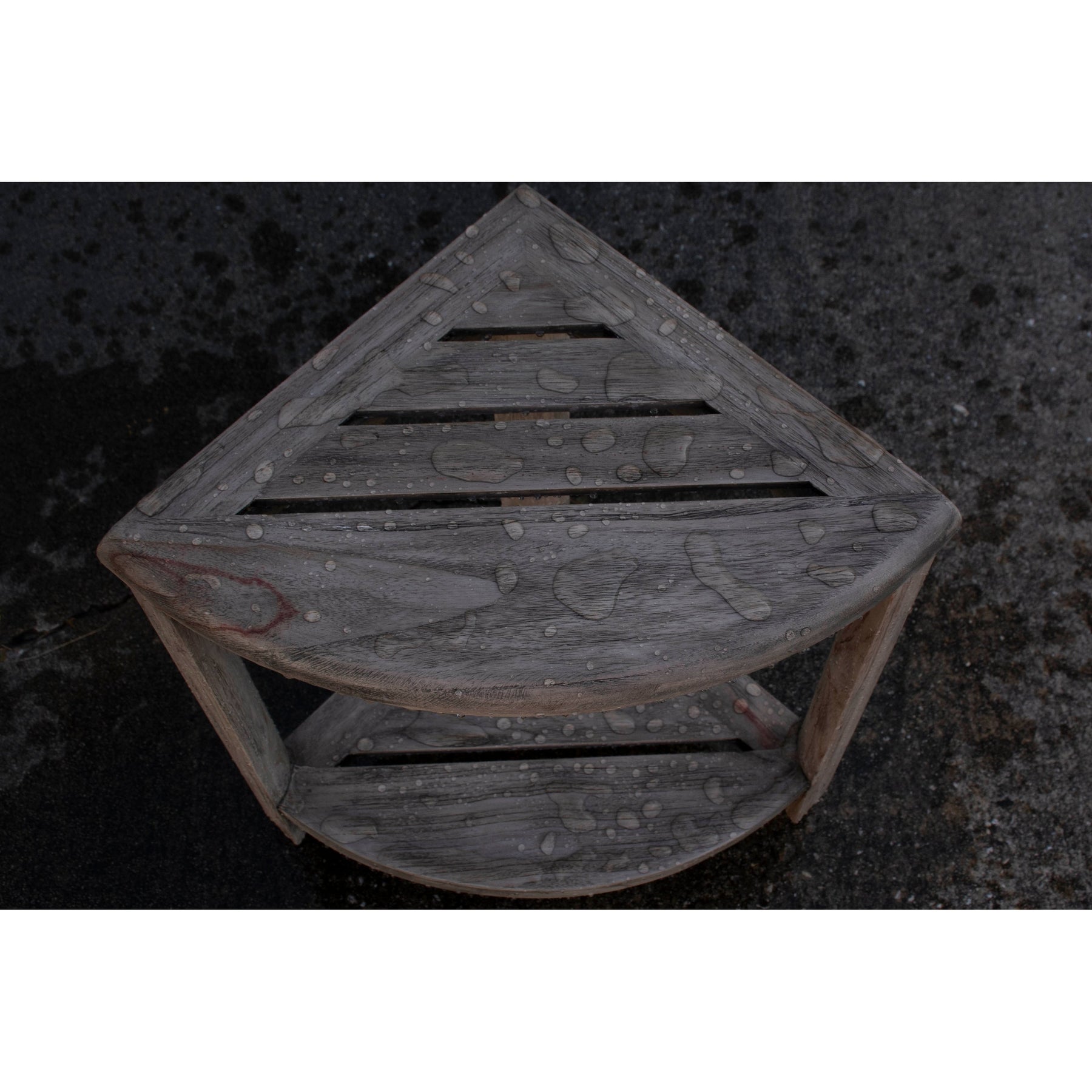 18 pouces de hauteur x 12 pouces de chaque côté, 17 pouces de largeur. Tabouret en teck à 2 niveaux, banc de douche d'angle en teck