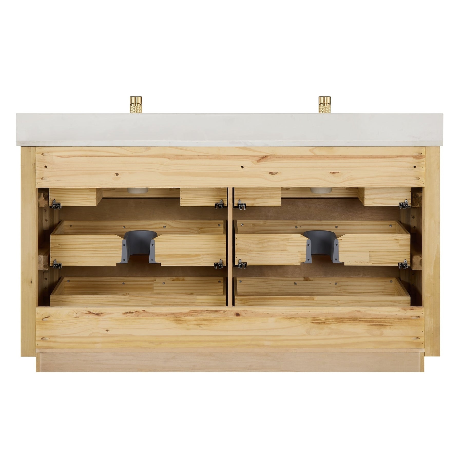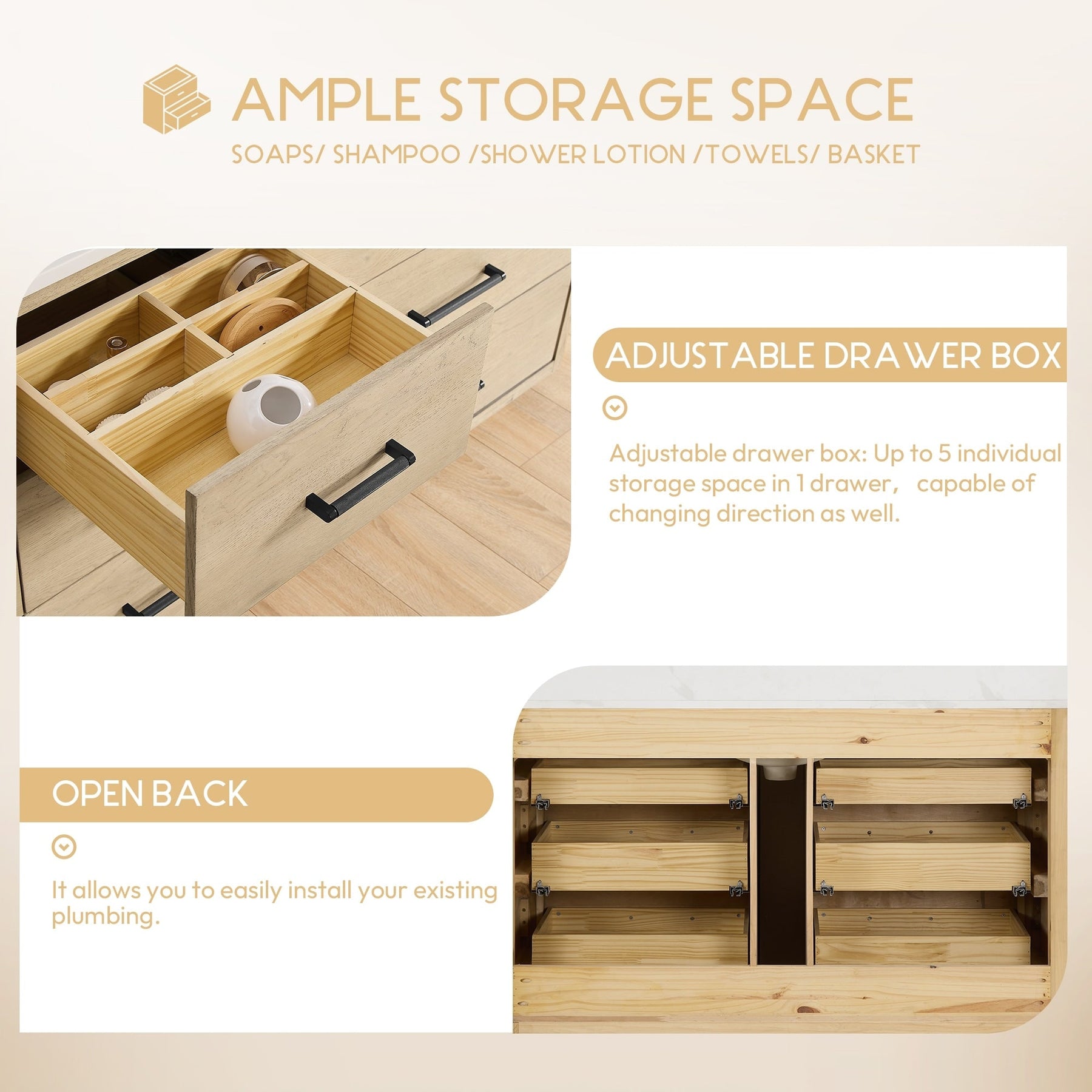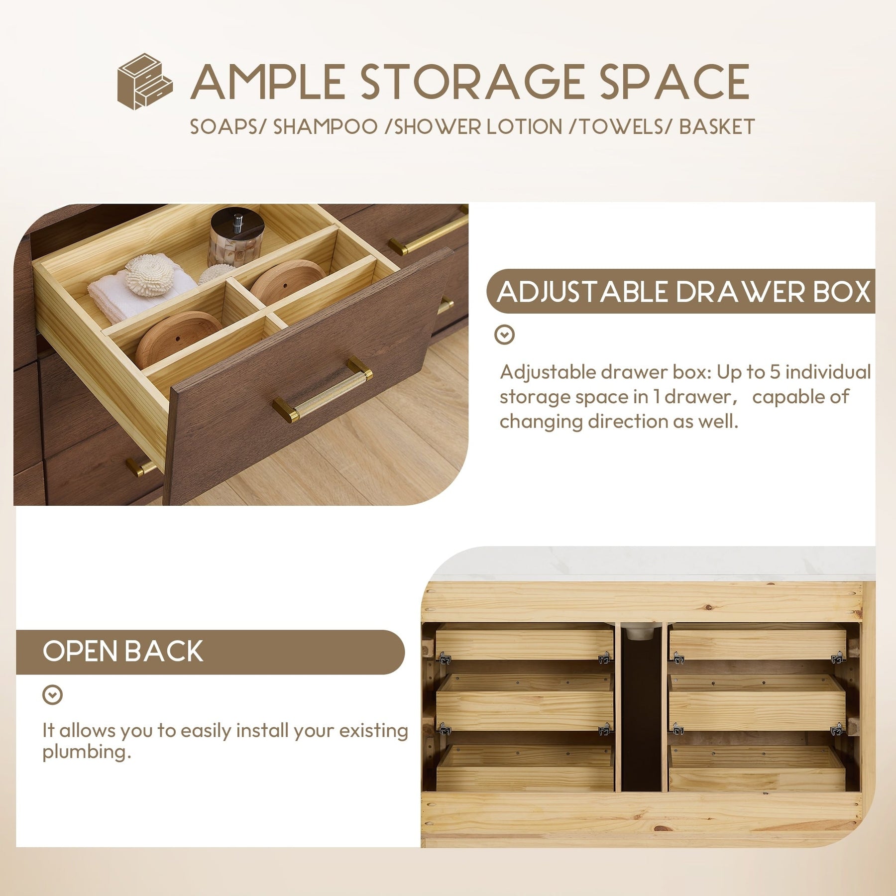 60 pouces - Six tiroirs à queue d'aronde robustes à fermeture douce sont dotés de cloisons intégrées pour un accès facile à tous vos articles de toilette.