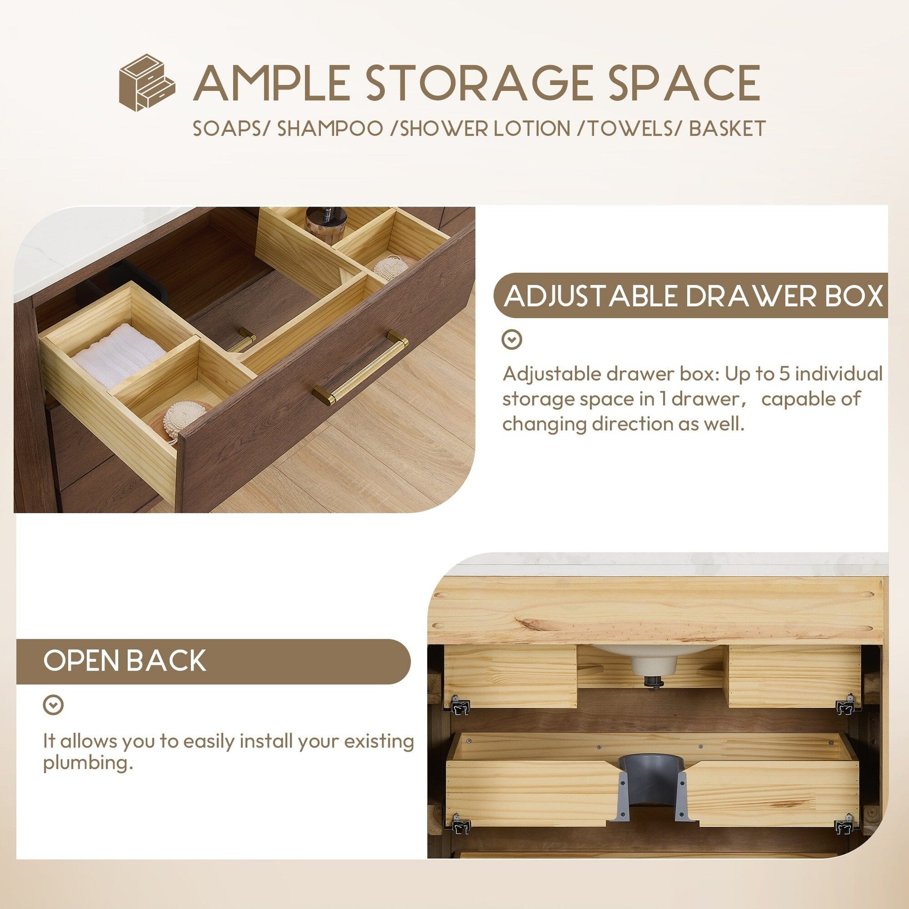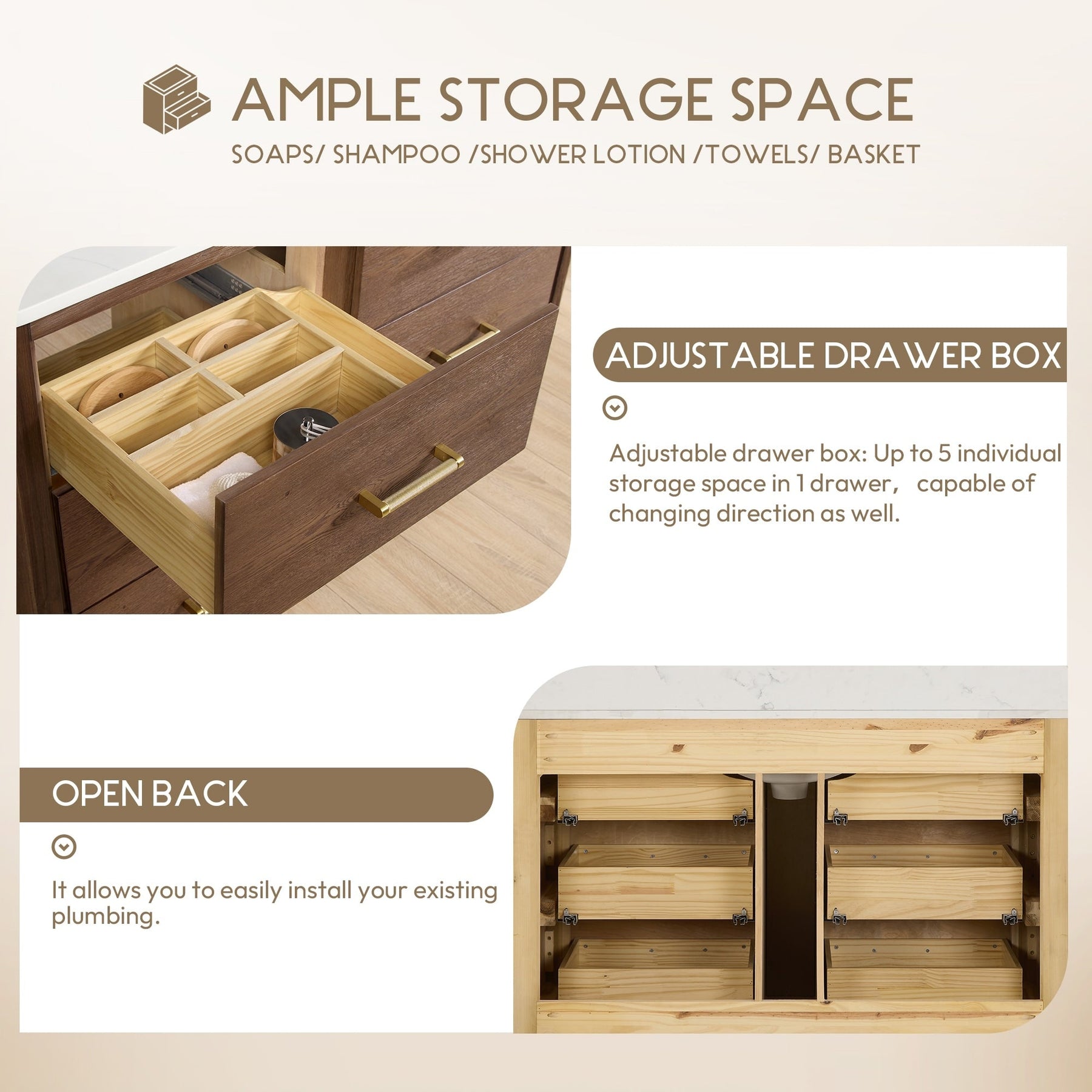 48 pouces - Six tiroirs à queue d'aronde robustes à fermeture douce sont dotés de cloisons intégrées pour un accès facile à tous vos articles de toilette.