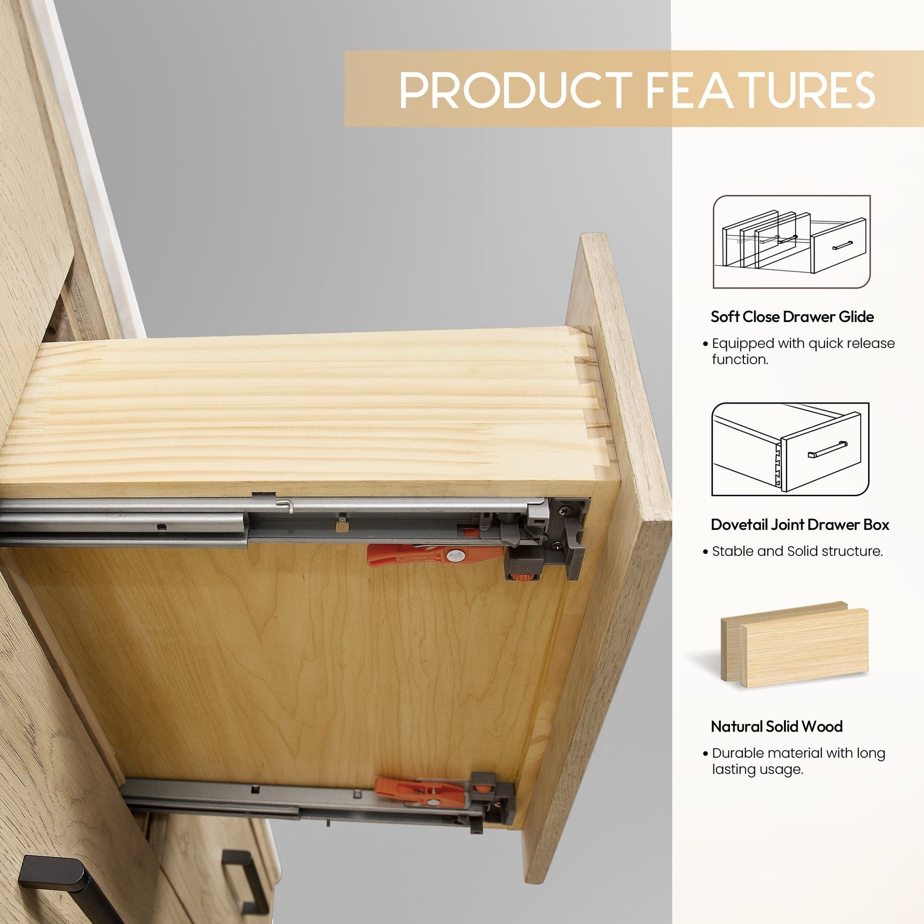 36 pouces - Trois tiroirs à queue d'aronde robustes et à fermeture en douceur sont dotés de cloisons intégrées pour un accès facile à tous vos articles de toilette.