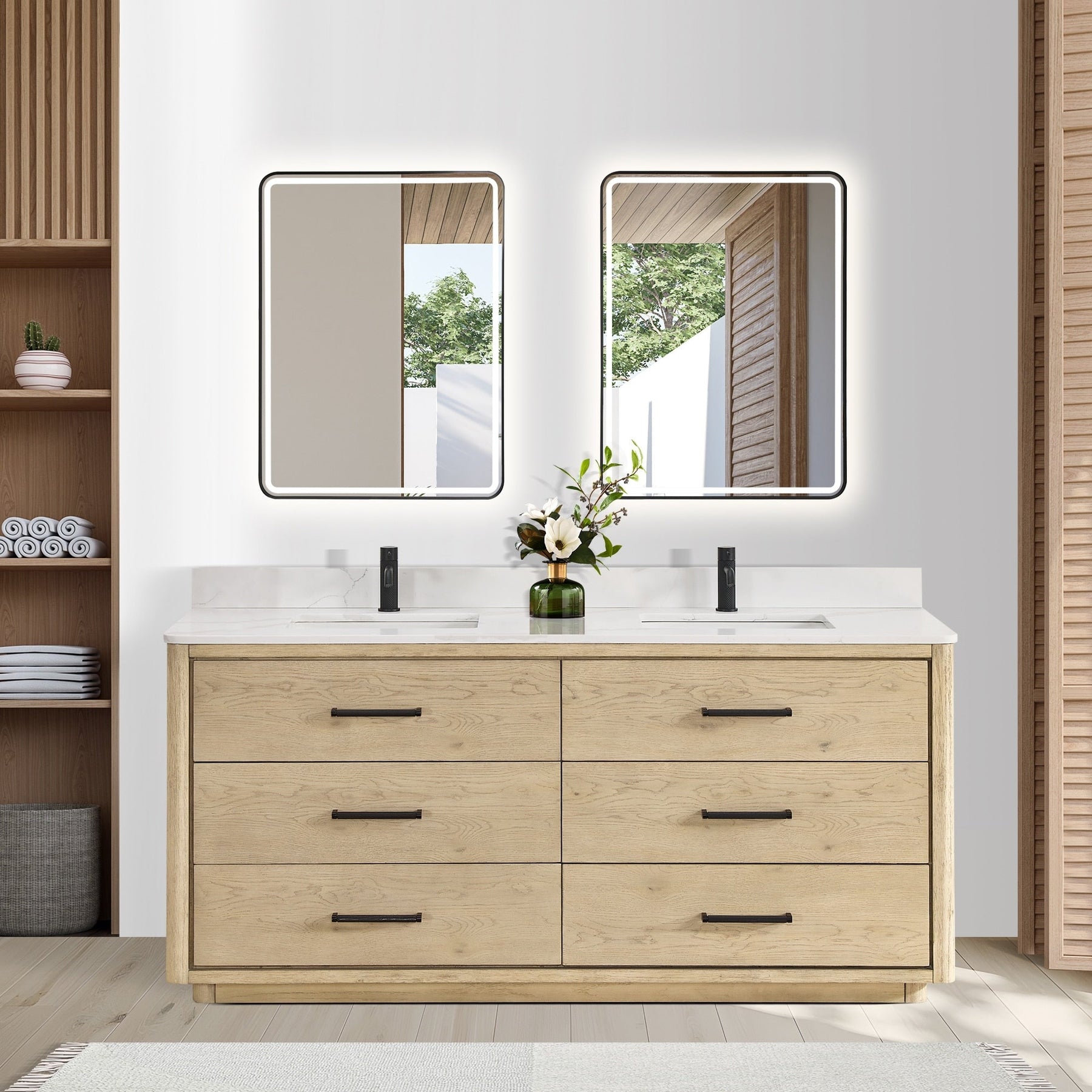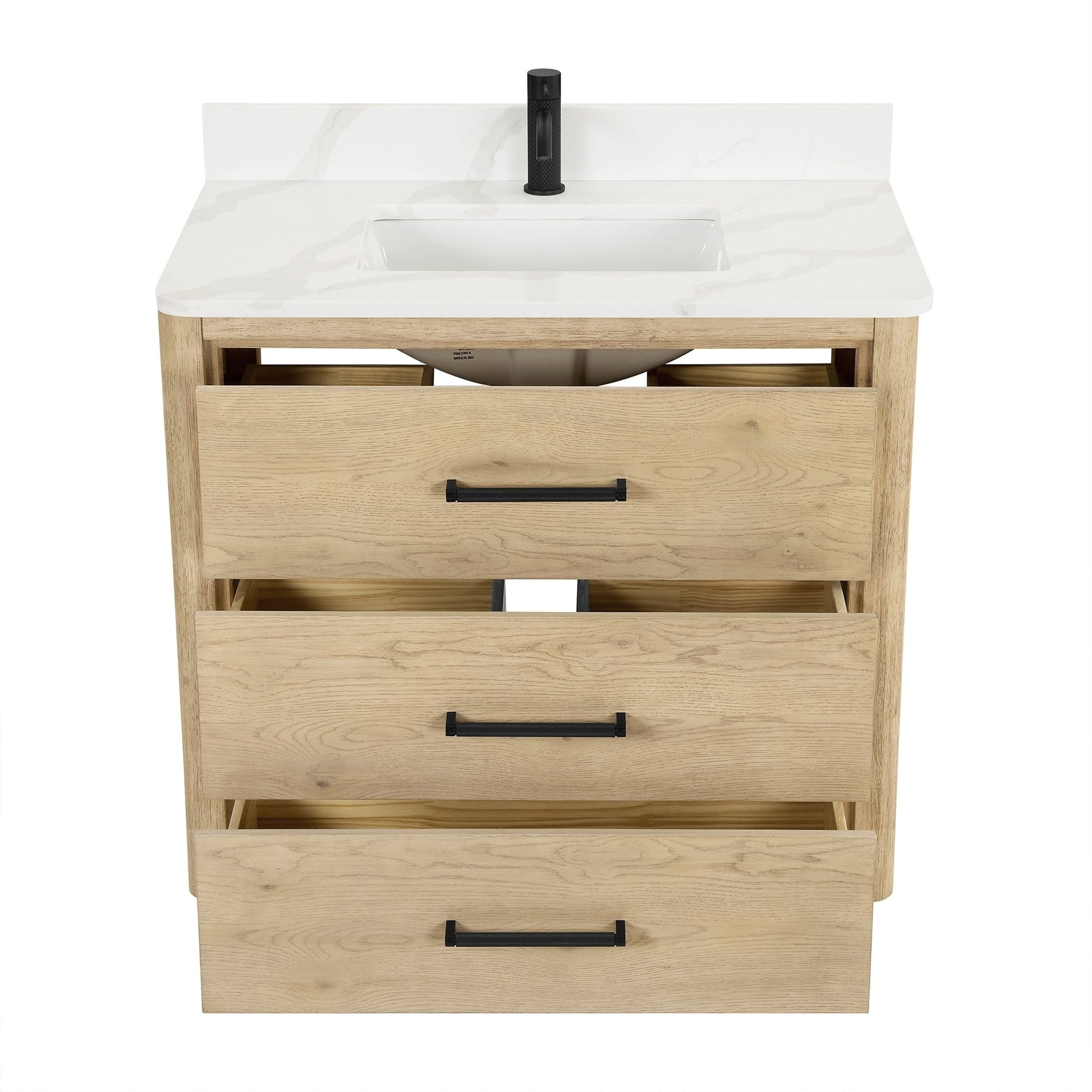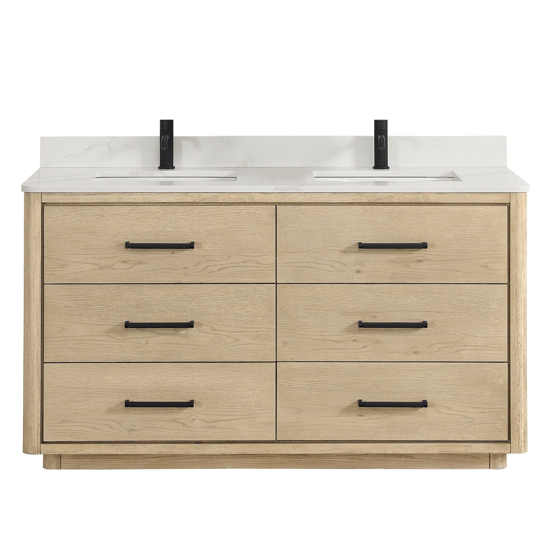 Transformez votre salle de bains en un havre de style et de sophistication grâce à notre meuble-lavabo autoportant de la série Porto, un meuble alliant savoir-faire artisanal et praticité au quotidien. Ce meuble raffiné allie la chaleur et l'élégance texturées du chêne massif au quartz blanc immaculé, créant un style à la fois accueillant et captivant. Ses profonds tiroirs à queue d'aronde avec compartiments vous permettent de ranger vos essentiels de manière discrète et organisée.