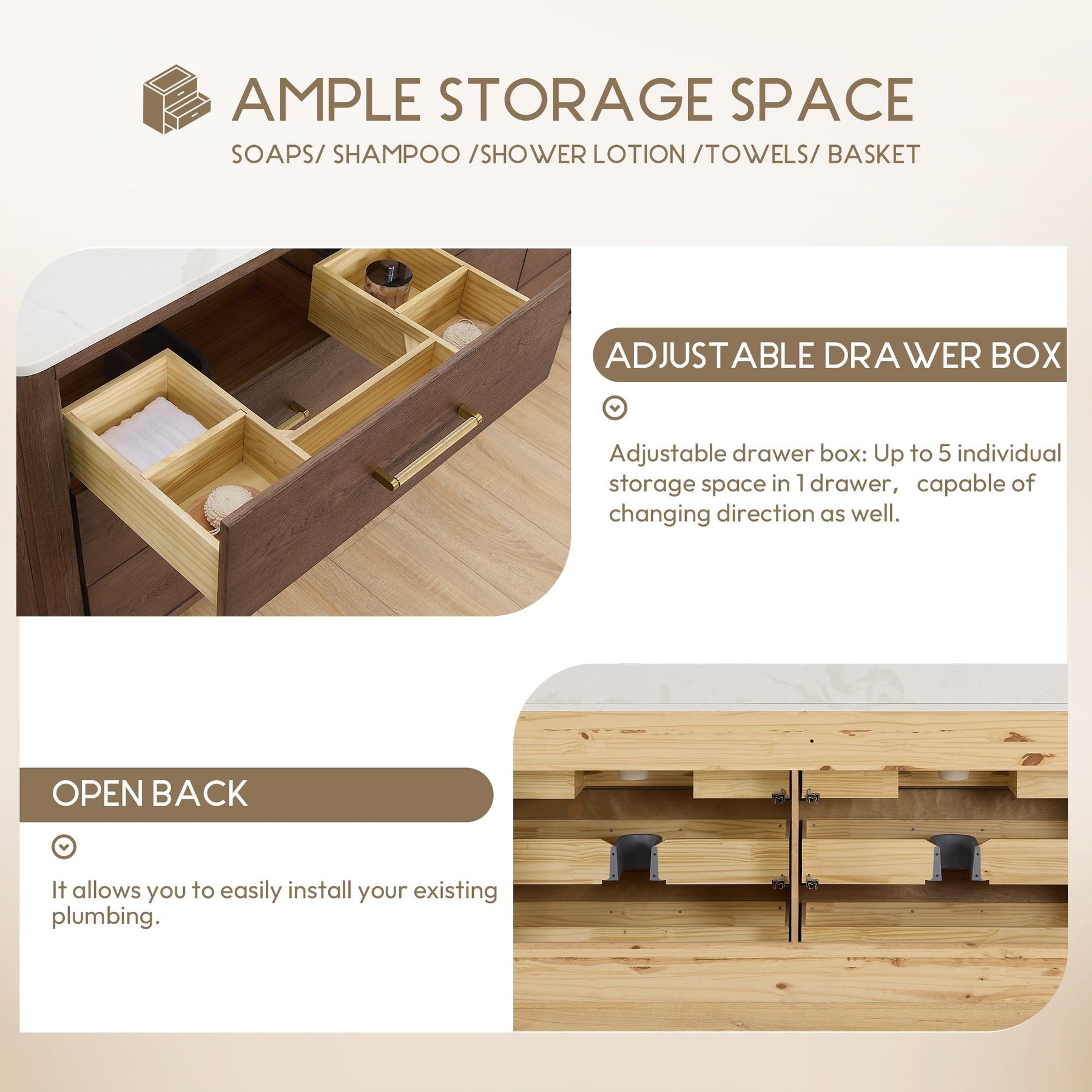 72 pouces - Six tiroirs à queue d'aronde robustes à fermeture douce sont dotés de cloisons intégrées pour un accès facile à tous vos articles de toilette.