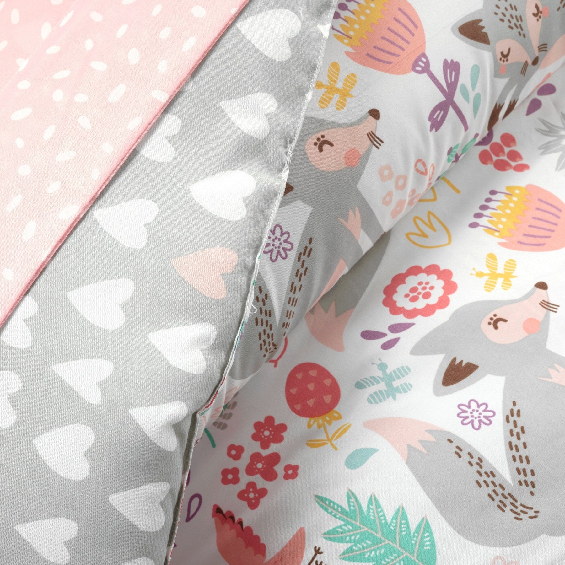 Décorer la chambre de votre enfant n'a jamais été aussi simple ! Avec cette parure de lit réversible complète de cinq pièces, composée d'une couette et d'un drap, vous pouvez décorer son espace avec des couleurs et des motifs adorables pour un décor inspiré des bois ou des animaux qu'il adorera.