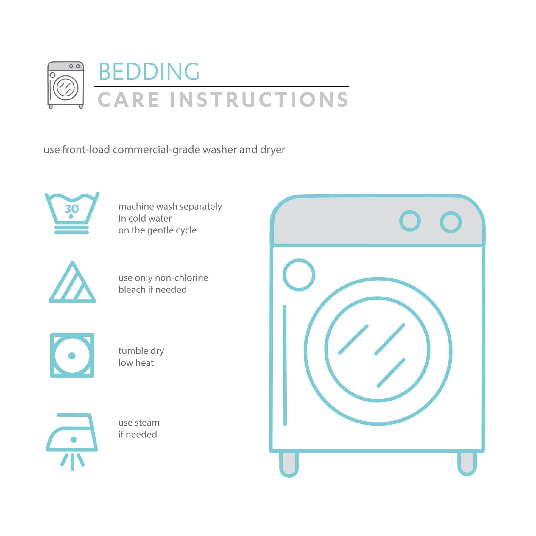 • Utiliser un lave-linge et un sèche-linge à chargement frontal de qualité professionnelle. Laver séparément en machine à l'eau froide, cycle délicat. Utiliser uniquement de l'eau de Javel sans chlore si nécessaire.