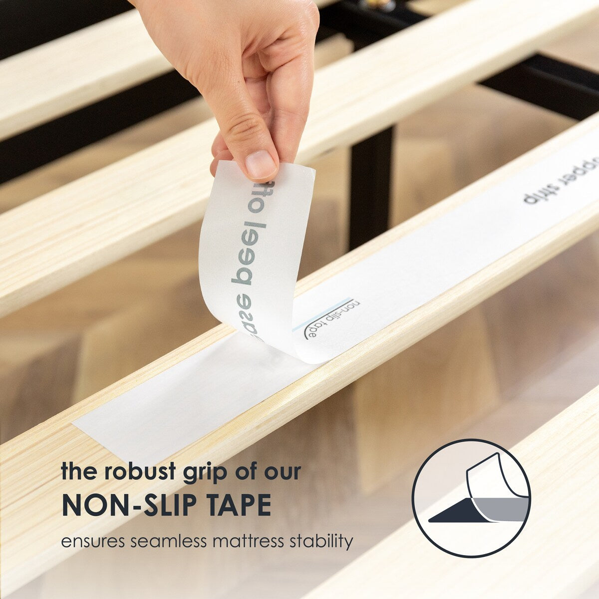 Bande antidérapante sur les lattes en bois pour plus de stabilité