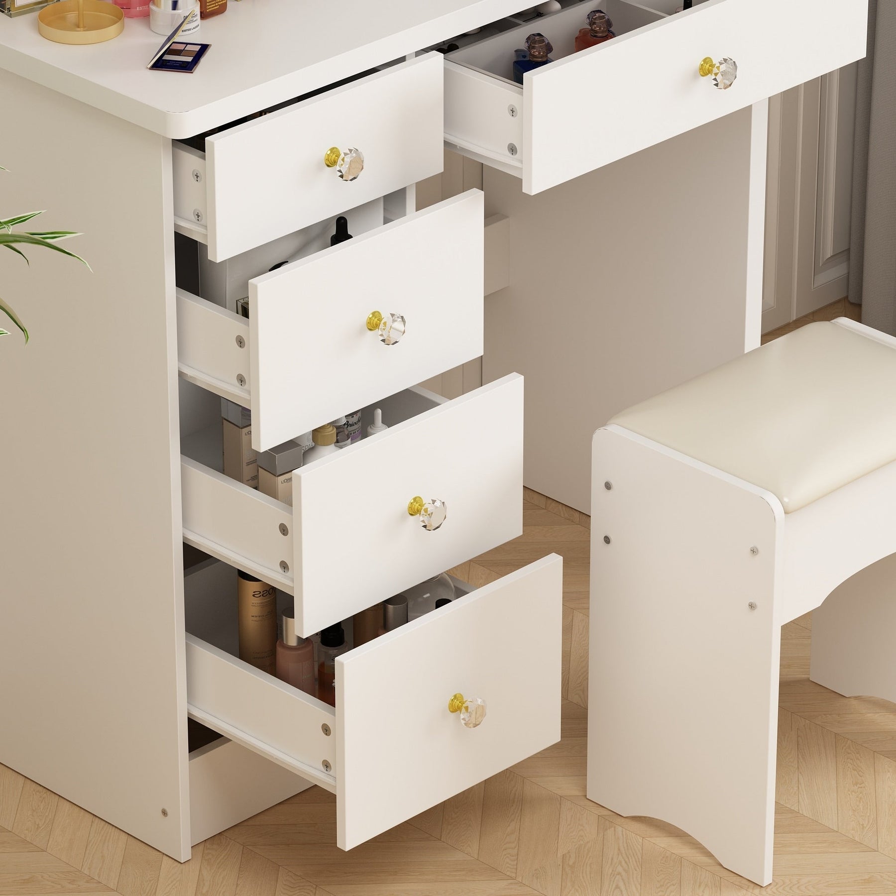 5 tiroirs spacieux pour un rangement optimal du maquillage, des bijoux et des accessoires pour cheveux