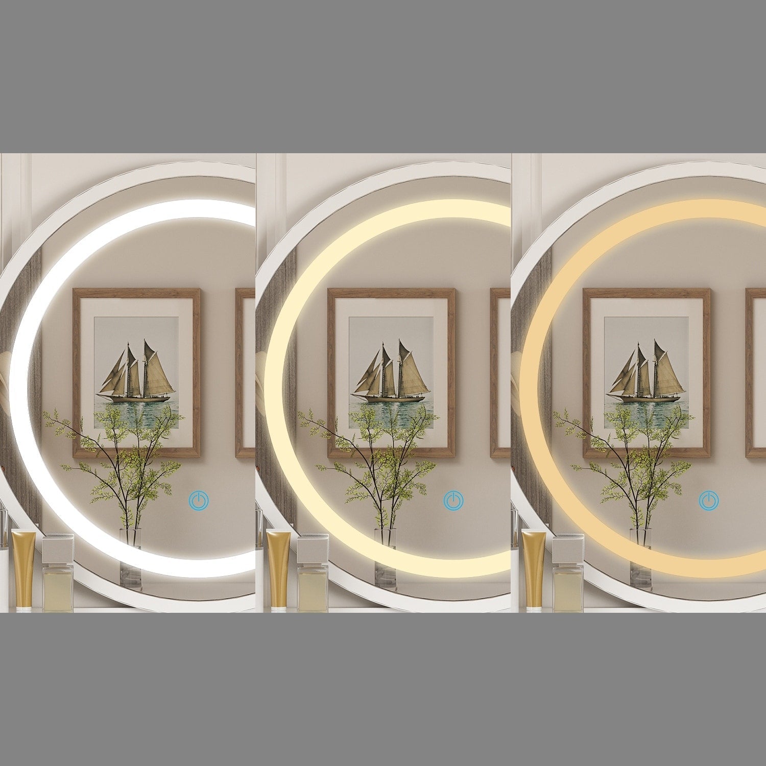 Design élégant et glamour avec un grand miroir à écran tactile avec lumières LED et un tabouret rembourré confortable