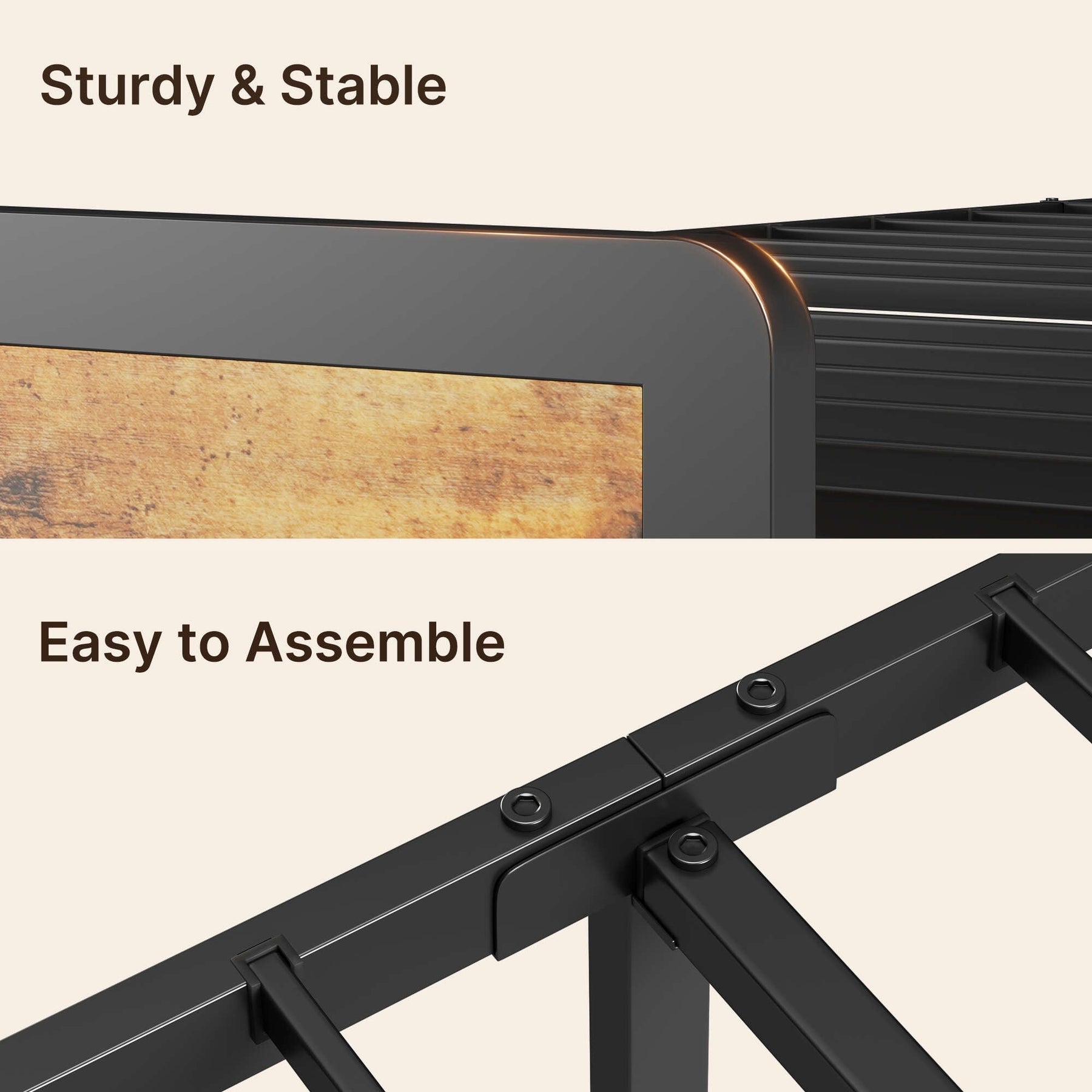 Assemblage facile : simple à assembler avec tous les outils nécessaires inclus, ce cadre de lit offre un processus d'installation fluide, afin que vous puissiez profiter de votre nouveau lit en un rien de temps.