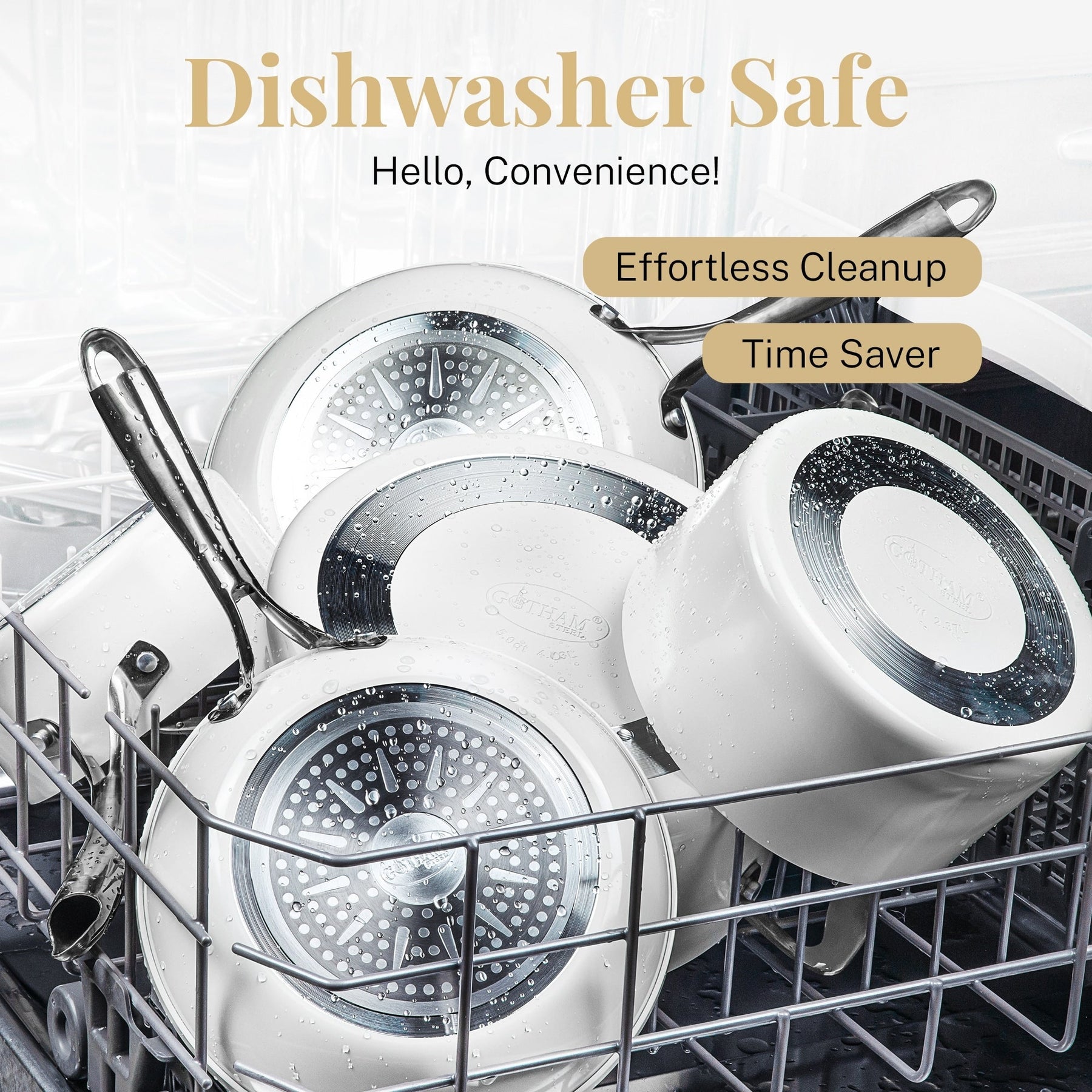 Soucieux de la santé et non toxique : Fabriqué sans produits chimiques nocifs comme le PTFE, le PFOA, le PFOS et le PFAS, cet ensemble favorise une cuisine sûre et saine et va au lave-vaisselle pour un nettoyage sans tracas.