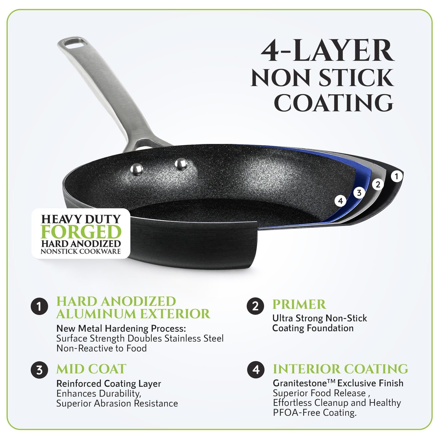 RIEN NE COLLE : Pensez à des aliments plus sains, à un démoulage facile des aliments et à un nettoyage sans effort avec Granitestone Armor Max. Chaque ustensile de cuisine est doté d'un revêtement antiadhésif ultra-adhérent à 4 couches conçu pour faire glisser les aliments directement et suffisamment durable pour résister à tous les ustensiles en métal, spatules, cuillères, fouets et même batteurs électriques !