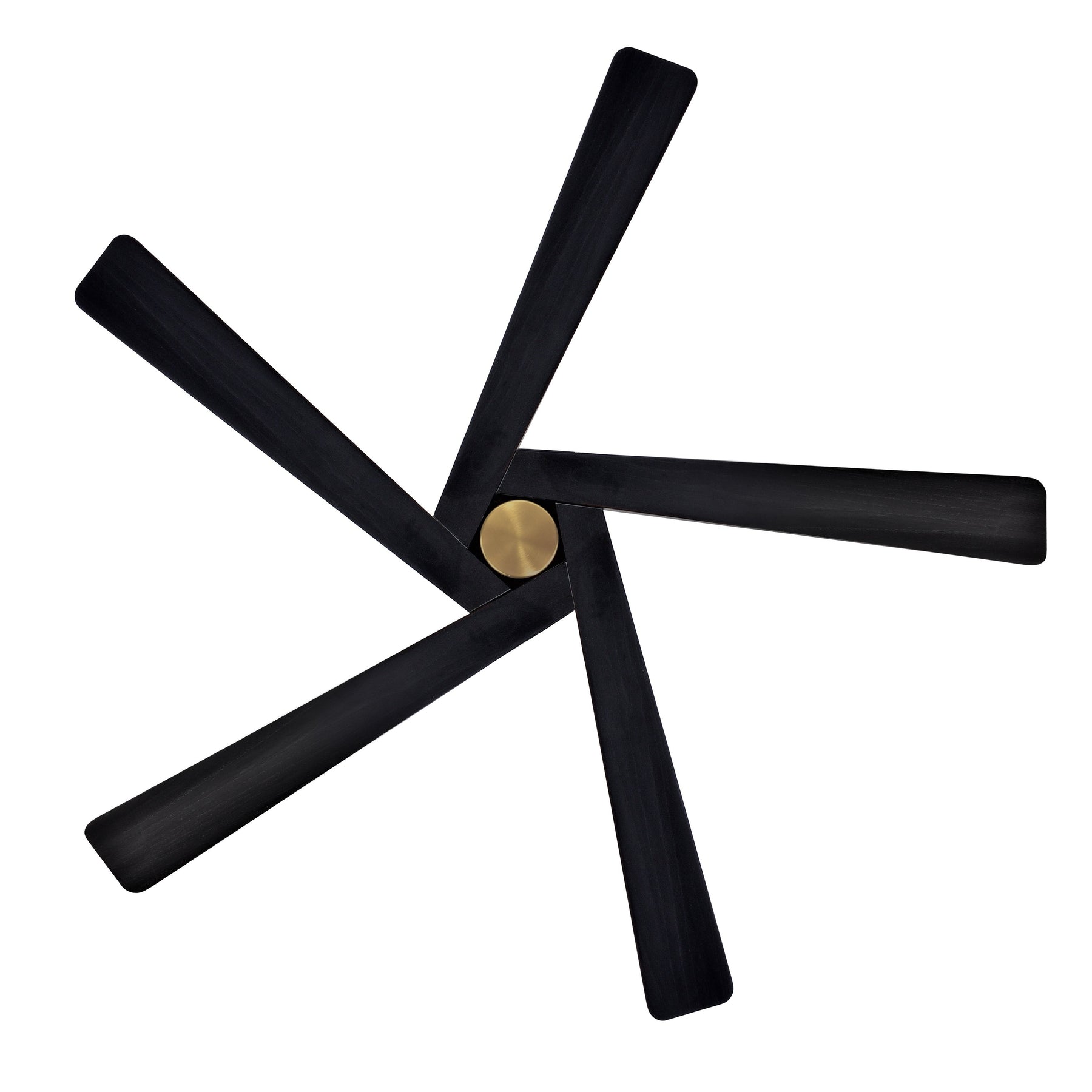 Déclaration de style audacieuse, la conception de ce ventilateur de plafond de transition présente une silhouette élégante et des pales en bois sculptées à la main