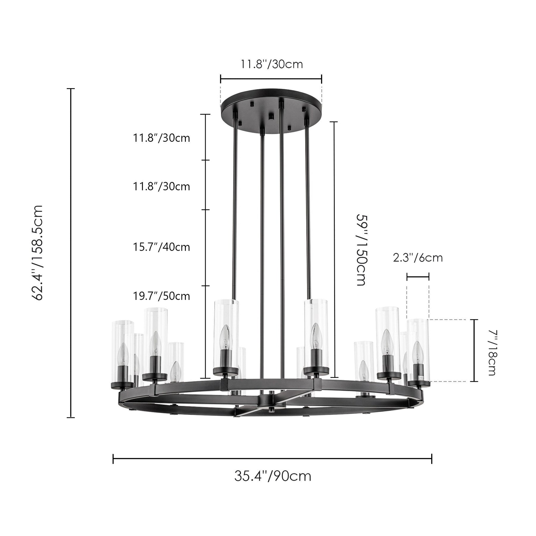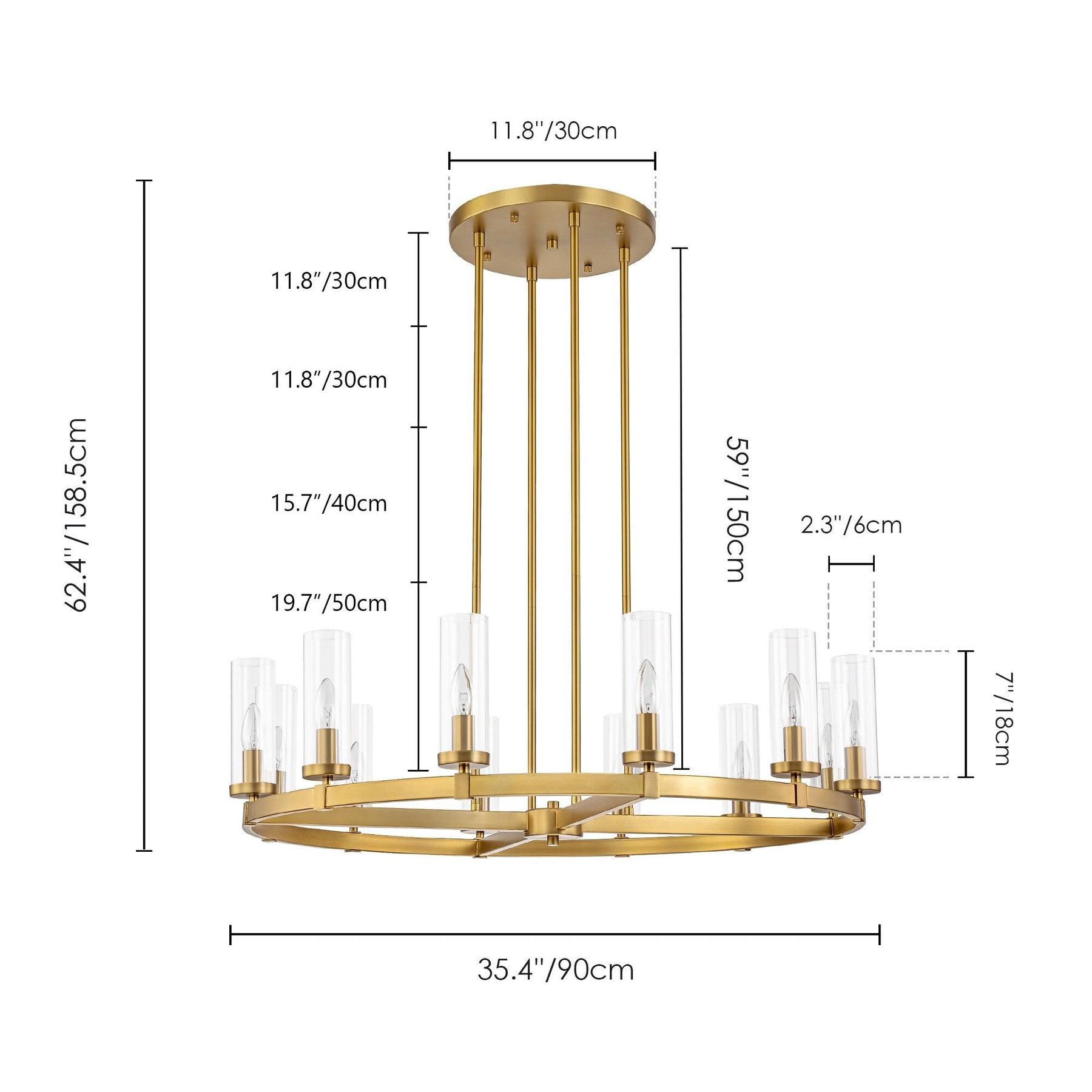 Luminaire : 35,4 po L x 9 po H