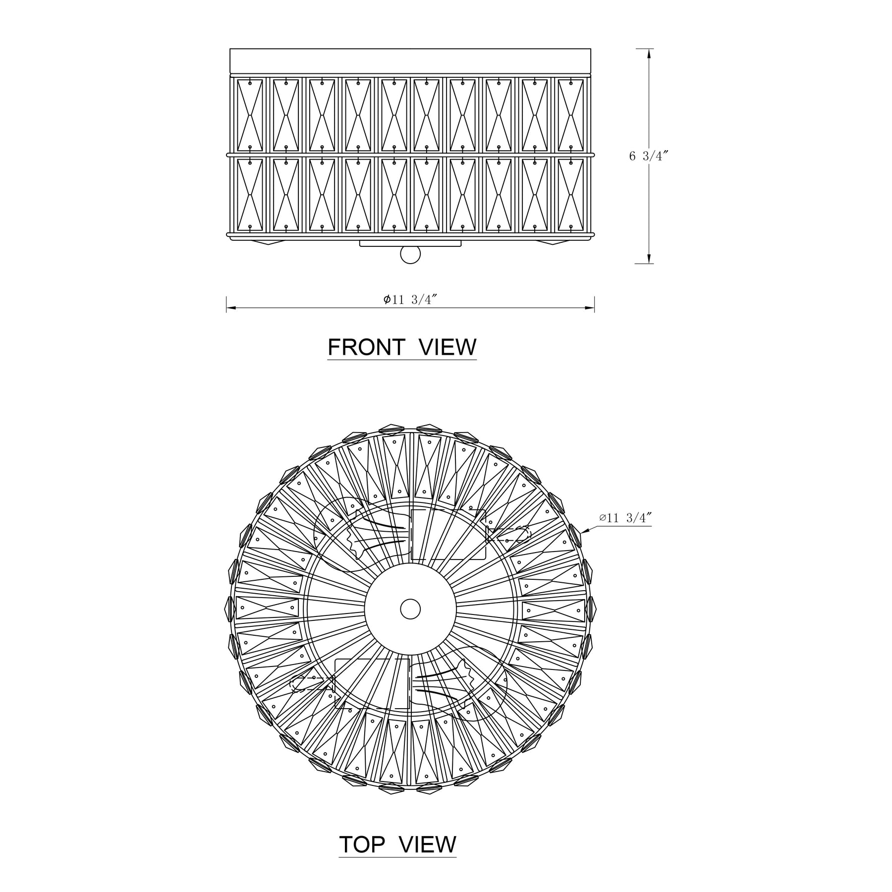 • Dimensions du produit : Le plafonnier encastré en cristal mesure D 11,75 pouces x H 6,75 pouces, sa plaque arrière mesure D 11,75 pouces.