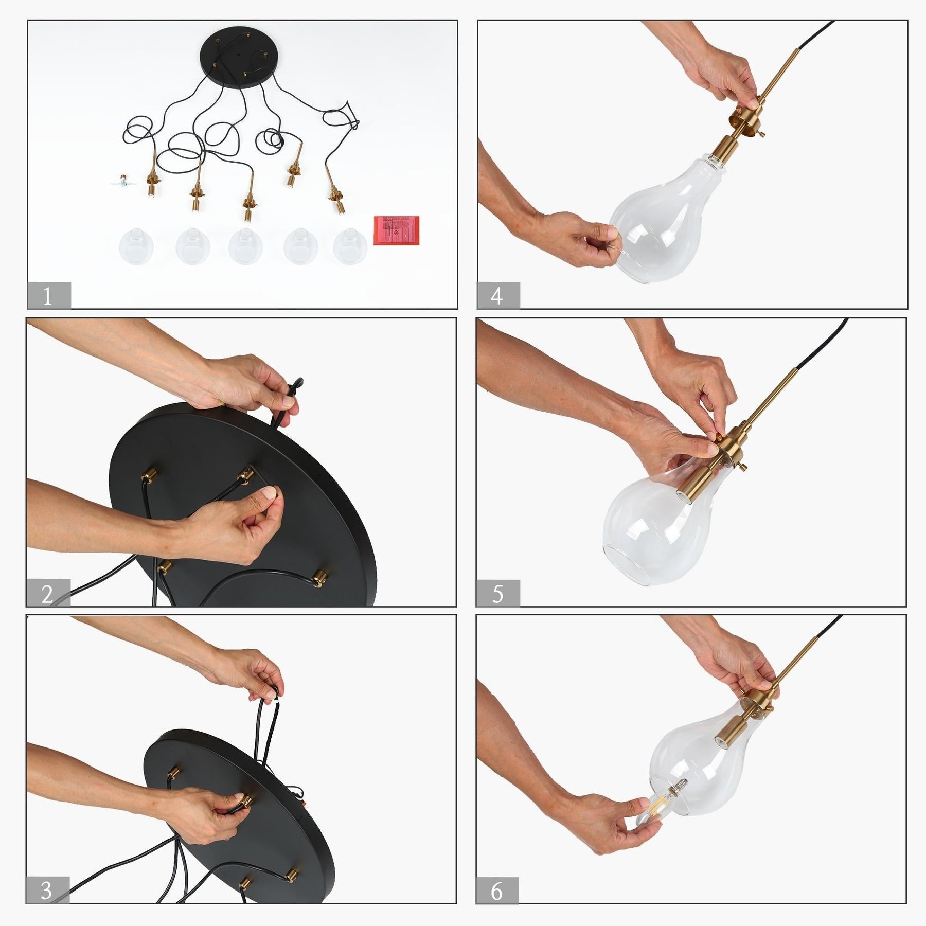 Nécessite 5 ampoules de type B, Max 40W, culot E-12 (non incluses) ; variateur/ampoules compatibles, non inclus