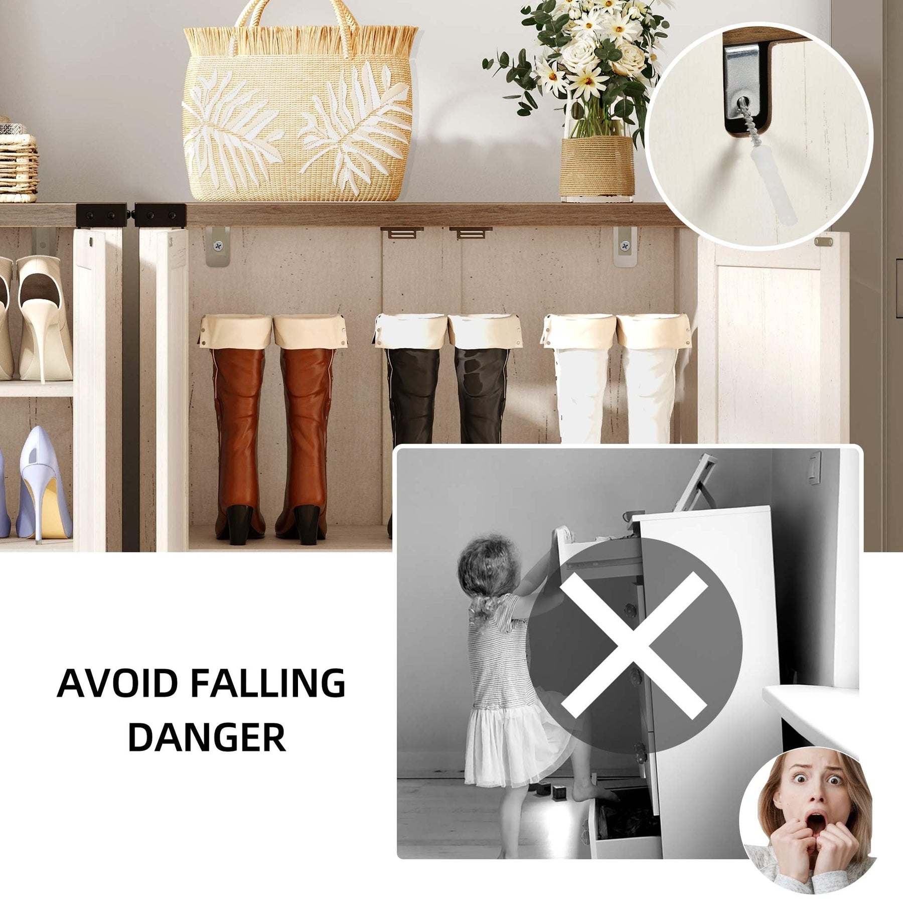 Le kit anti-basculement inclus améliore la sécurité et la stabilité.