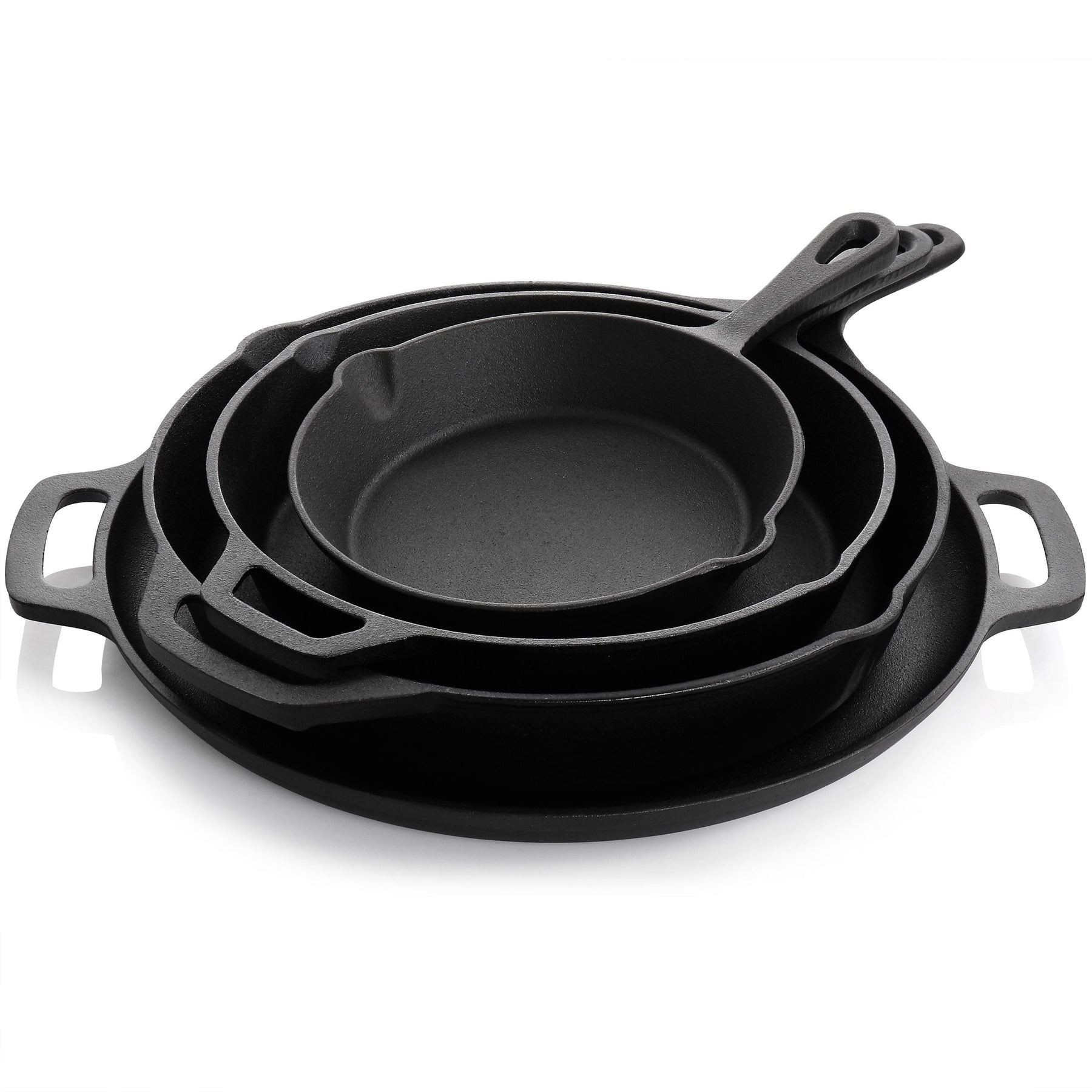 Cet ensemble de 12 pièces en fonte pré-cuite est livré avec tout le nécessaire pour cuisiner, des rangements aux poêles. Sa construction en fonte assure une répartition optimale de la chaleur pour une cuisson optimale : friture, sauté, pâtisserie, grillades, braisage et bien plus encore ! Cet ensemble essentiel en fonte comprend trois poêles de différentes tailles, une cocotte avec couvercle rabattable, deux poignées en silicone, deux grattoirs, un protège-poignée en silicone et un organiseur de rangement. Chaque pièce est pré-cuite pour éviter la rouille pendant le stockage et pour une utilisation immédiate. La cuisson continue des huiles crée une finition antiadhésive renforcée qui garantit une résistance accrue et une longue durée de vie à ces ustensiles. Les gants en silicone assurent une manipulation sûre lorsque les poêles sont chaudes. Les grattoirs facilitent le nettoyage et peuvent également être utilisés pour la cuisson, la cuisson ou le récurage. Support en métal de qualité offrant des options de rangement, placez-le directement dans votre armoire ou utilisez-le pour ajouter un espace de rangement sur le comptoir de votre cuisine. Matériau : fonte pré-assaisonnée Couleur : noir/rouge La fonte assure une chaleur uniforme pour plus de consistance Le couvercle du four hollandais sert également de poêle à frire supplémentaire Poignées en silicone pour une manipulation sûre Lavage à la main uniquement, séchage immédiat Passe au four à 450 degrés Poêle de 7,87 pouces Poêle de 10,23 pouces avec poignée Poêle de 11,81 pouces avec poignée Plaque à pizza de 13,77 pouces Cocotte de 10,23 pouces avec couvercle Ensemble de grattoirs 2 pièces Un couvercle de poignée en silicone 2 mitaines en silicone Un organisateur de casseroles à étagère en métal Dimensions par article : Cocotte - 12,7 pouces de longueur, 10 pouces de diamètre, 4,5 pouces de hauteur, 8,10 lb Couvercle/poêle à cocotte - 12,7 pouces de longueur, 9,5 pouces de diamètre, 1,7 pouces de hauteur, poids de 3,40 lb Petite poêle - 12,25 pouces de longueur, 8,1 pouces de largeur, 1,5 po de hauteur, 2,5 lb de poids. Poêle moyenne - 15,9 po de longueur, 10,5 po de largeur, 1,9 po de hauteur, 4,7 lb de poids. Grande poêle - 18,1 po de longueur, 12,4 po de largeur, 2,25 po de hauteur, 7,05 po. Poêle à pizza - 16,4 po de longueur, 13,4 po de diamètre, 1,1 po de hauteur, 7,10 lb de poids. Organisateur de poêle - 11,75 po de longueur, 7,9 po de largeur, 16,6 po de hauteur, 3,5 lb de poids. Mitaines en silicone - 3,25 po de longueur, 0,5 po de largeur, 1,8 po de hauteur, 0,05 lb de poids chacune. Grattoir - 3,2 po de longueur, 3,25 po de largeur. Grattoir lisse - 2,25 po de longueur, 3 po de largeur.
