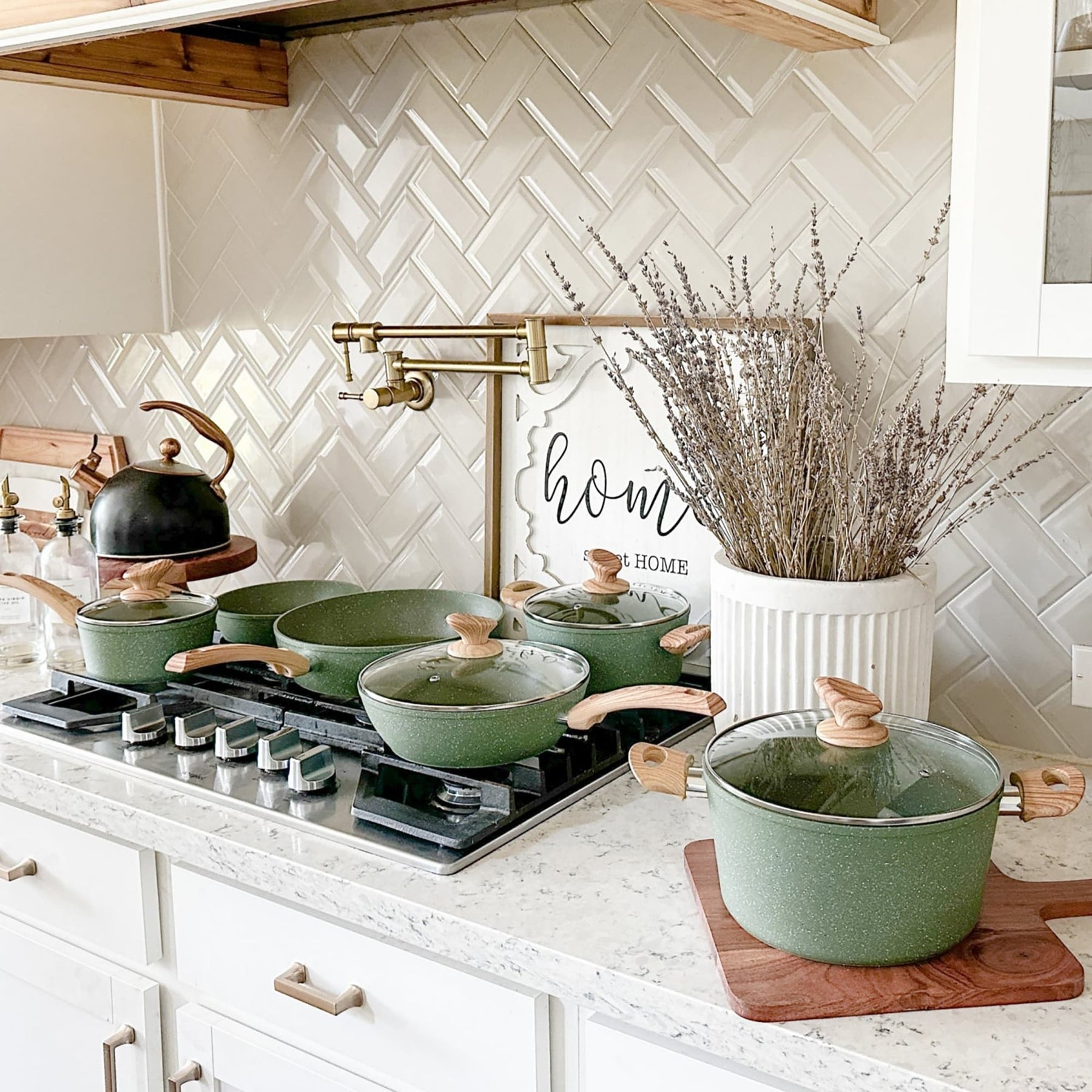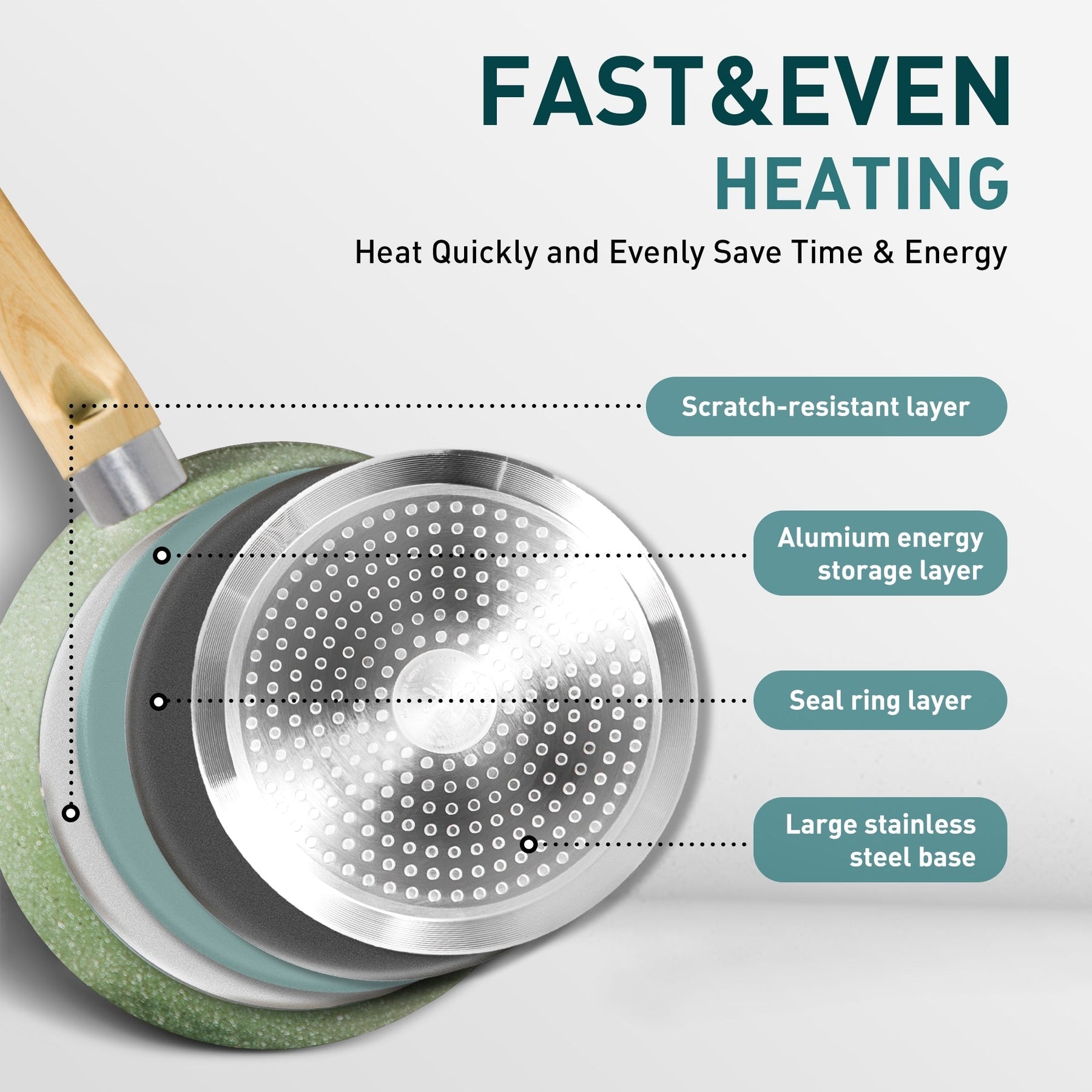 Préparez des plats savoureux avec la batterie de cuisine antiadhésive avec revêtement en granit Kitchen Academy. Chaque pièce est dotée d'un fond en aluminium forgé pour une cuisson uniforme sur tous les feux, y compris l'induction. L'extérieur en granit alimentaire triple couche offre une durabilité et une résistance exceptionnelles à la déformation, tandis que l'intérieur recouvert de marbre naturel facilite la cuisson et le nettoyage. Les poignées en bakélite aspect bois apportent une touche d'élégance à cet ensemble polyvalent.