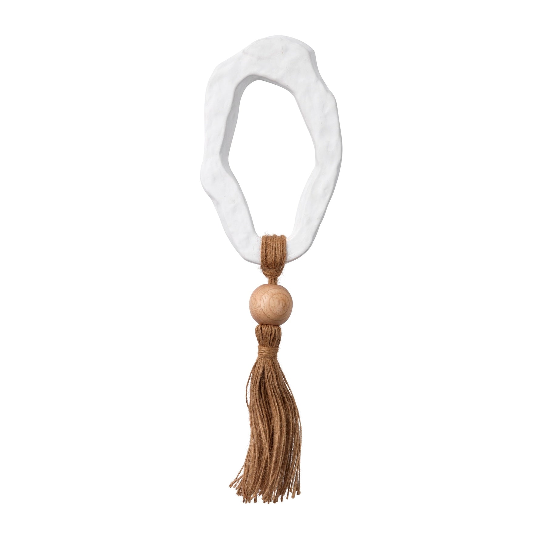Inspiré des designs orientaux, cet ensemble de trois suspensions décoratives créera un point focal saisissant sur votre mur. Fabriqués à la main en résine, ces anneaux organiques aux formes libres sont ornés de perles de bois et de corde en sisal. Accrochez-les en rangée décorative ou individuellement, comme ornements décoratifs dans toute pièce nécessitant une touche d'originalité.