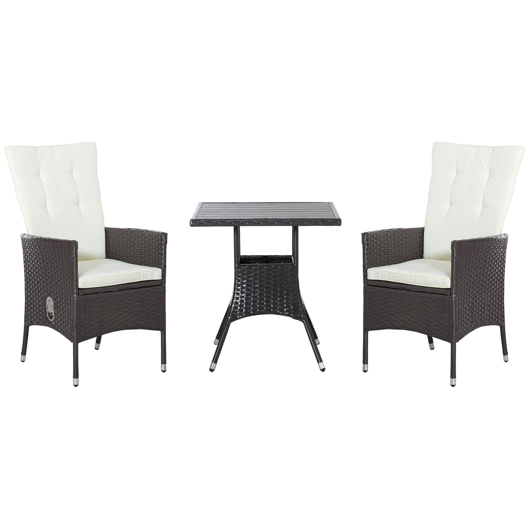 Notre ensemble bistro de patio trois pièces comprend deux chaises inclinables d'extérieur et une table basse assortie