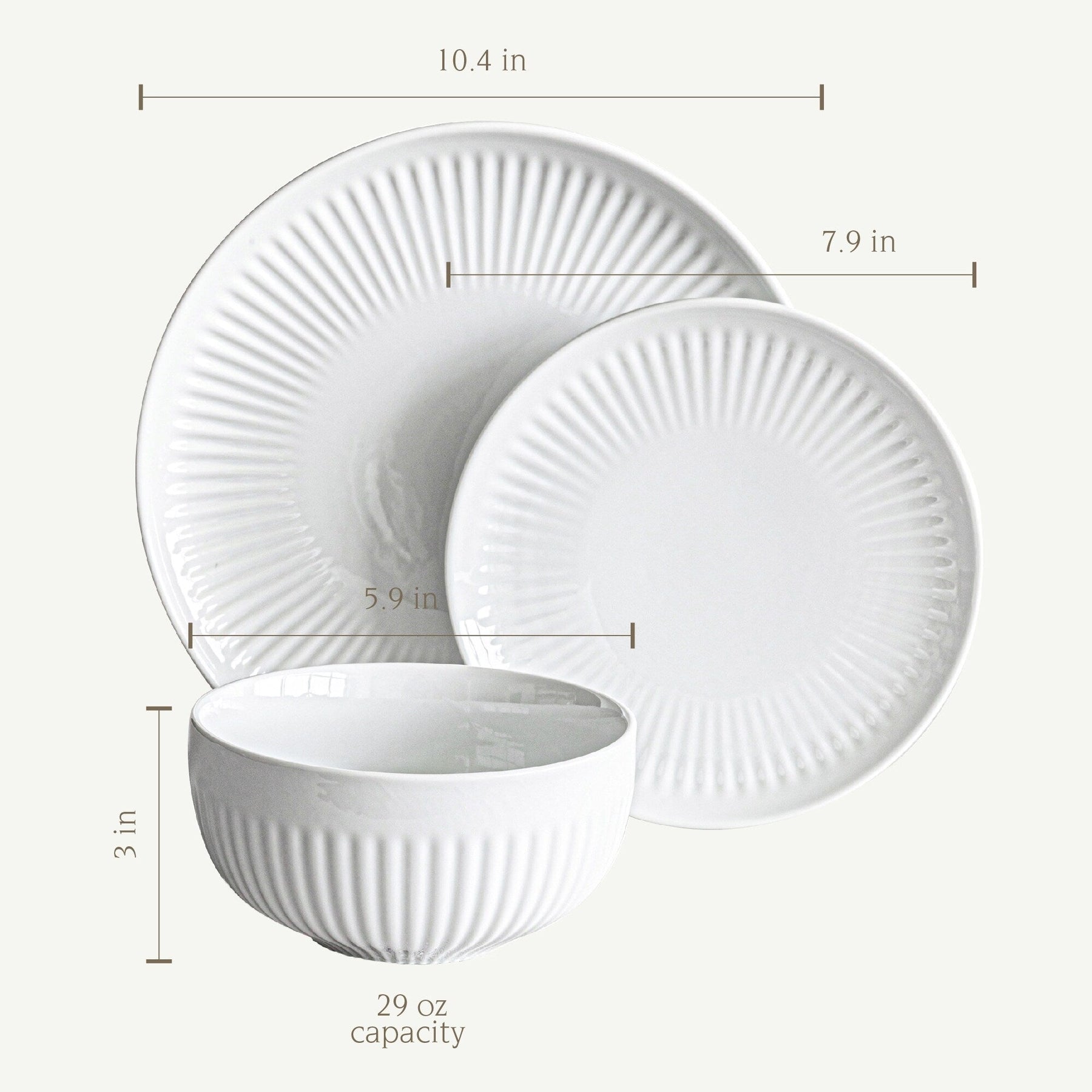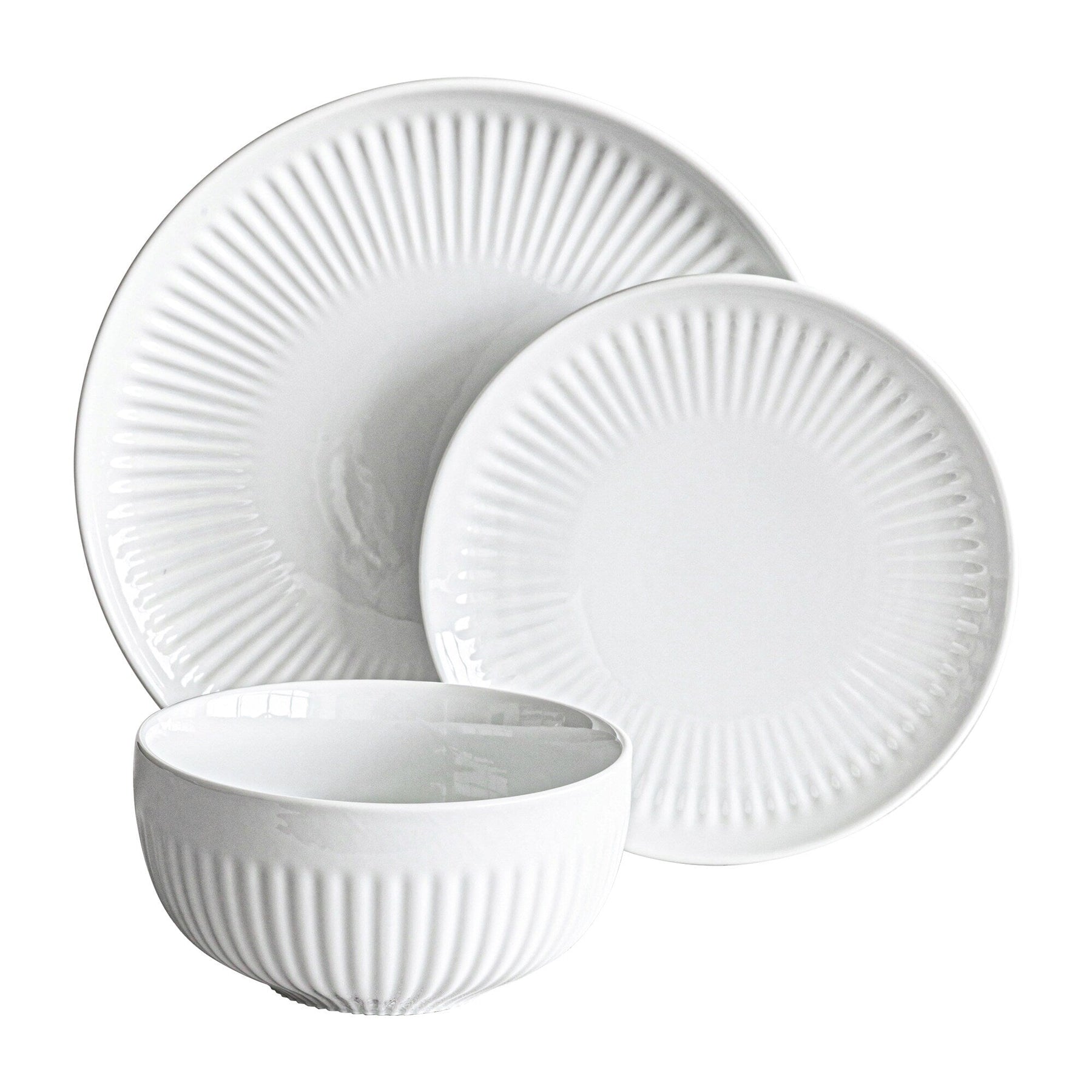 Service de table cannelé en porcelaine blanche Over and Back, 24 pièces