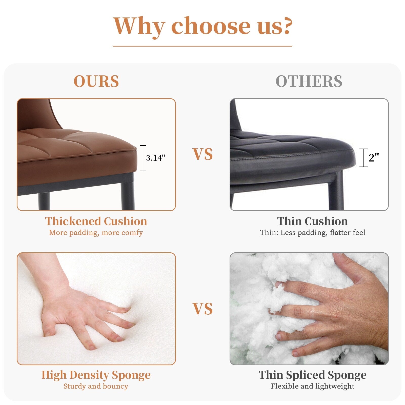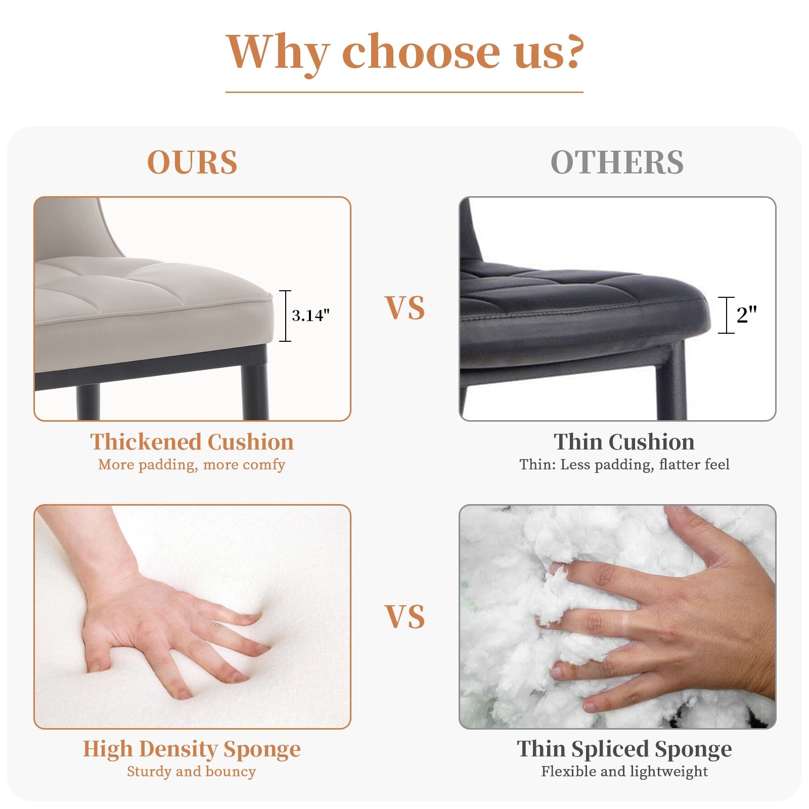 Sublimez votre salle à manger avec ces élégantes chaises contemporaines en similicuir. Leurs lignes épurées et épurées ajoutent une touche de sophistication à votre espace, tandis que leur assise confortable en mousse à rebond élevé et leur dossier haut en font le choix idéal pour une assise prolongée. Fabriquées en similicuir de qualité supérieure, imperméable, résistant à l'huile et à la saleté, ces chaises sont faciles à nettoyer et à entretenir. Leur structure métallique robuste et intégrée peut supporter jusqu'à 200 kg, garantissant stabilité et durabilité. Elles s'intègrent parfaitement à tous les styles de décoration, que ce soit à la maison, au bureau ou au restaurant !