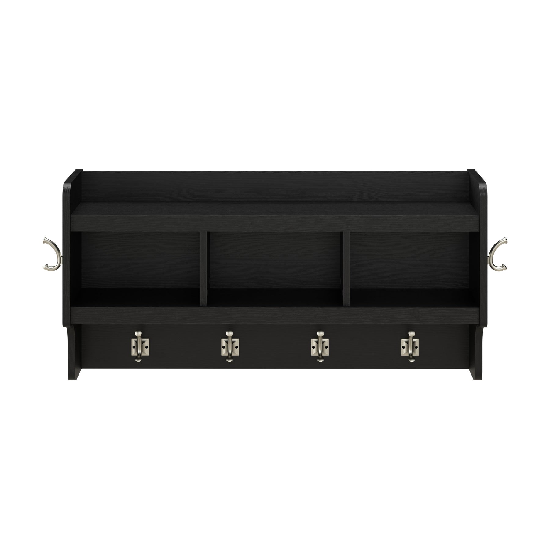 • L'étagère murale comprend quatre crochets à double broche à l'avant et un de chaque côté pour accrocher des vestes, des chapeaux, des écharpes et plus encore