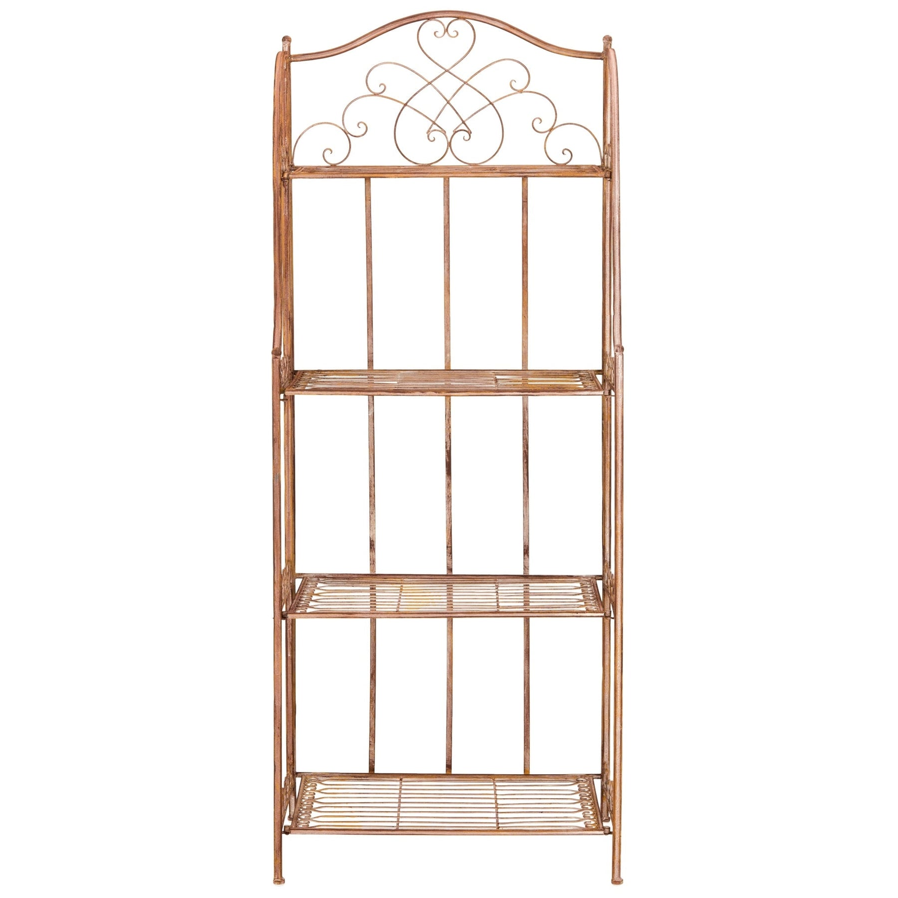 Orné de détails délicats, ce support de boulangerie d'extérieur apporte style et élégance à tout espace de réception extérieur. Ses volutes en fer forgé confèrent à Amaris un charme victorien vintage, tandis que ses quatre niveaux d'étagères offrent un vaste espace de rangement ou d'exposition.