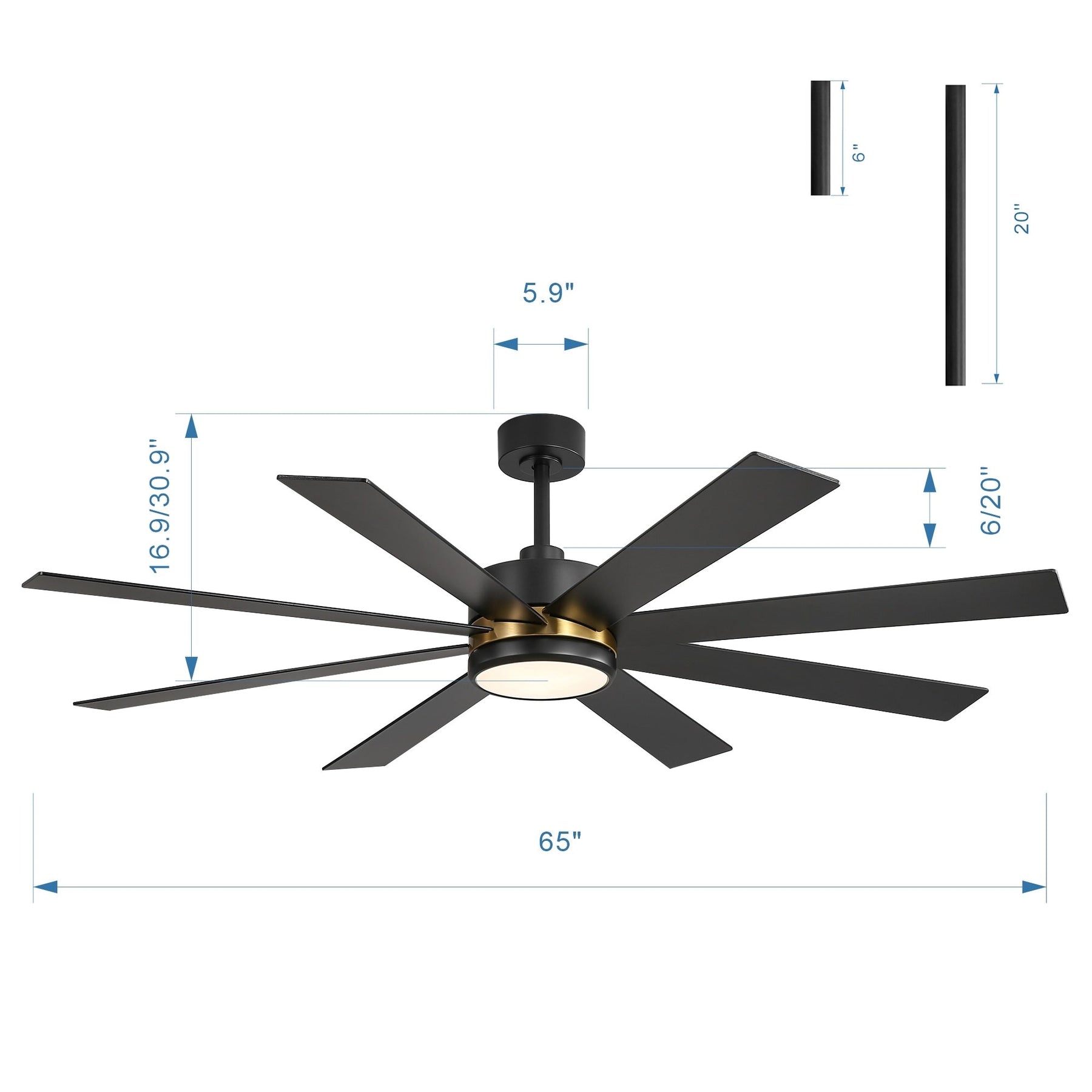 - Le ventilateur de 65 pouces fournit un débit d'air jusqu'à 6 500 pi3/min, ce qui le rend idéal pour les grandes pièces