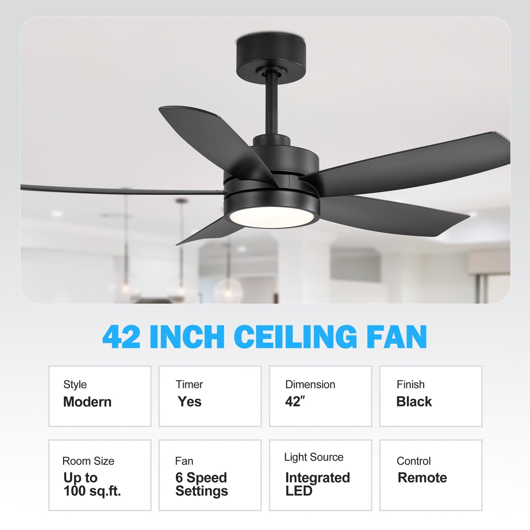 Ventilateur de plafond LED Breezary 65/52/42 à 5 pales avec kit d'éclairage et télécommande