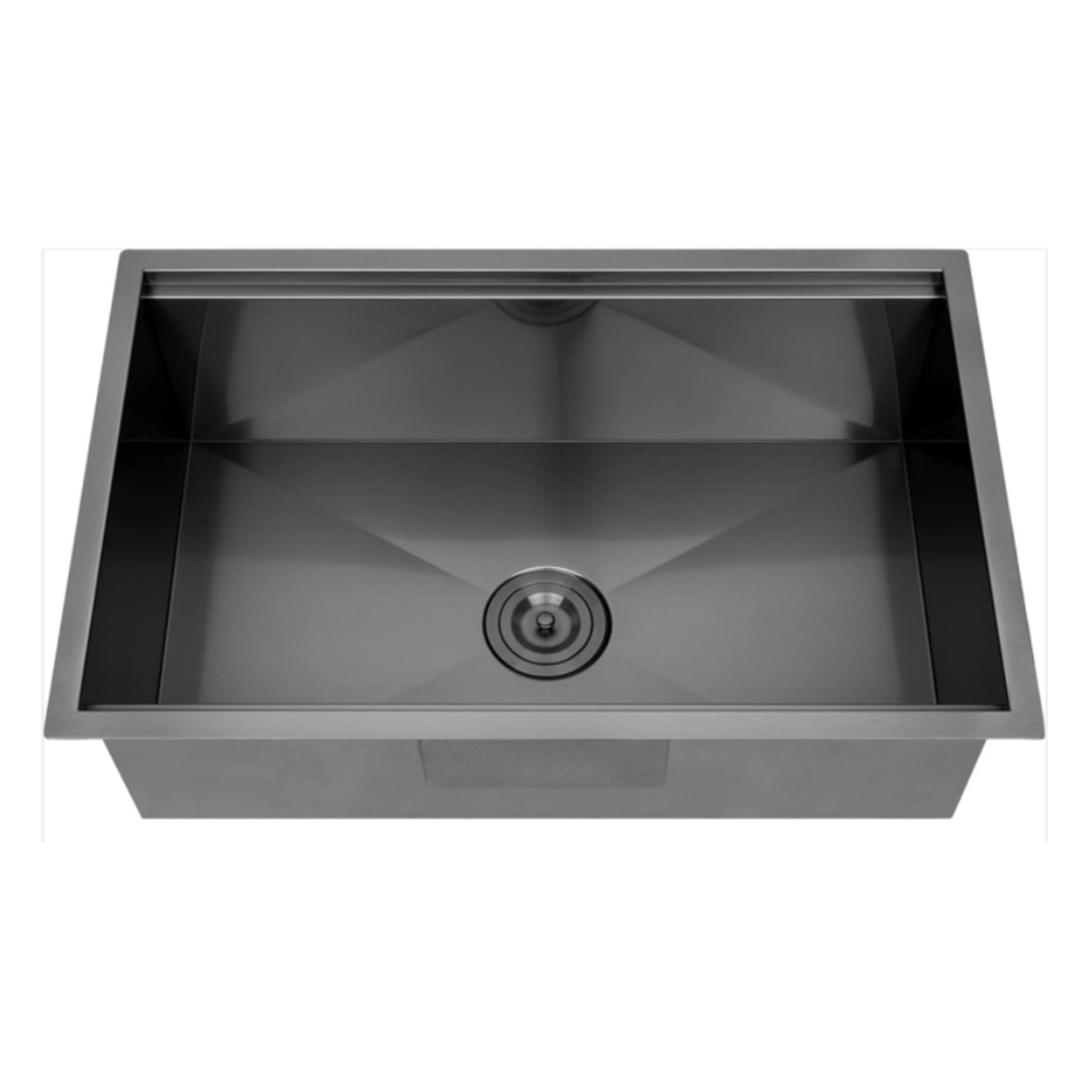 L'évier de cuisine en acier inoxydable noir/doré CB Home, à encastrer ou sous plan, de 81 cm x 48 cm, sublime votre cuisine en alliant esthétique contemporaine et polyvalence moderne. Son rebord intégré, conçu à l'avant et à l'arrière, permet de glisser les accessoires intégrés pour une utilisation plus pratique. Parmi les accessoires, on trouve : une planche à découper, une grille de fond, une passoire, un égouttoir à vaisselle enroulable et une passoire profonde en acier inoxydable. Fabriqué en acier inoxydable de calibre 18, il est plus solide, durable et facile à nettoyer, sans risque de rayures ni de corrosion. Son bac simple de 81 cm, profond et de grande capacité, permet de ranger facilement casseroles, poêles et plats dans un évier plus spacieux, pour un gain de place sur le plan de travail et un nettoyage facile. Disponible en 3 coloris noir/doré/acier inoxydable, il s'adapte à tous les styles de cuisine. Modernisez votre cuisine avec cet évier CB Home !
