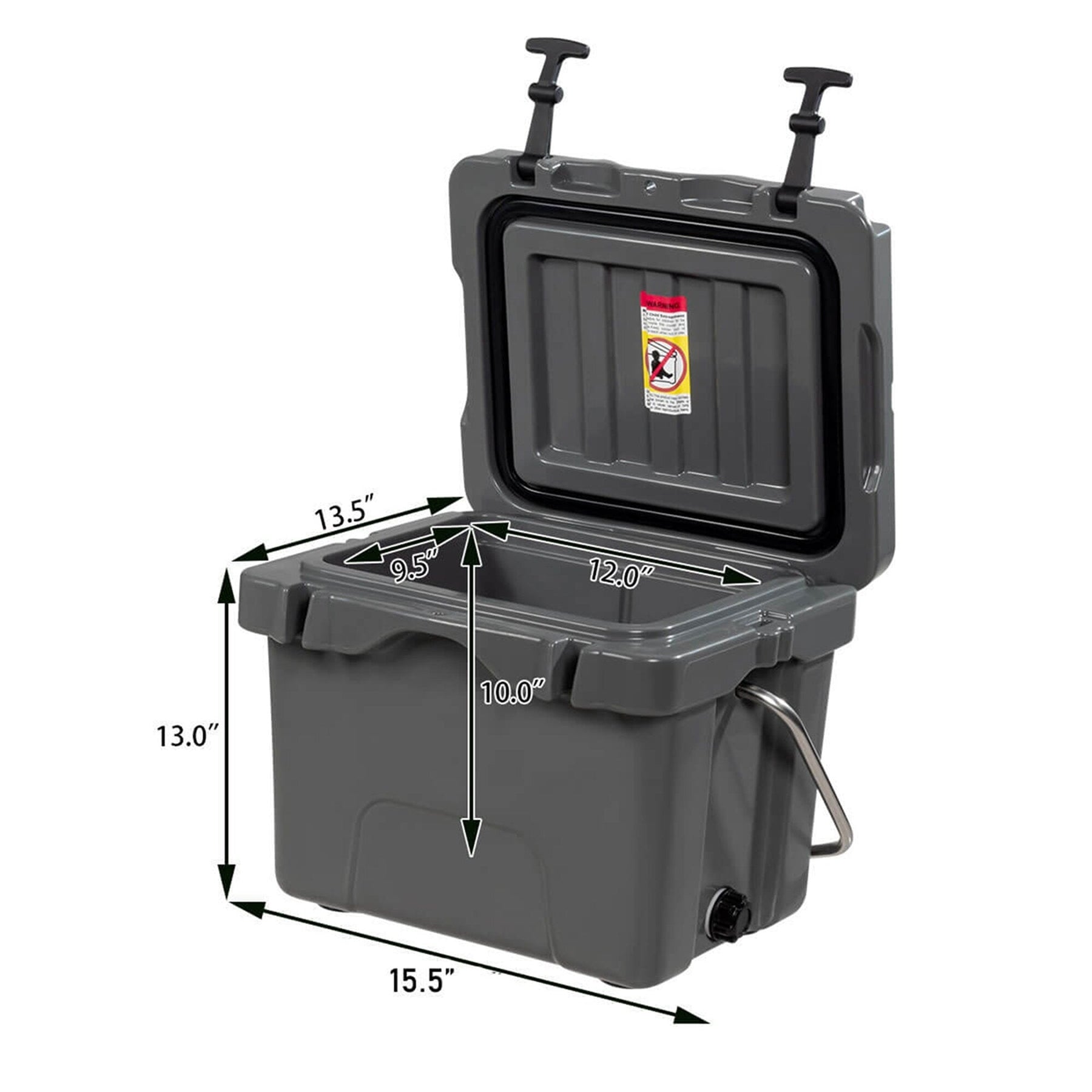 Cette glacière aux performances optimales et à la construction rotomoulée indestructible est sans aucun doute le partenaire idéal pour vos activités de plein air. Fabriquée en PE et PU isolants de qualité supérieure, cette glacière de 16 litres est non toxique et conserve vos aliments, boissons et fruits au frais pendant 3 à 5 jours. Portable, elle s'adapte à diverses situations, comme les barbecues, les pique-niques, la pêche, le camping ou les voyages en voiture. Elle permet également de maintenir les aliments au chaud. Elle est équipée de deux porte-gobelets, de loquets de sécurité, d'un couvercle verrouillable, d'une poignée en acier inoxydable, d'un bouchon de vidange et de repose-pieds. Tous ces détails bien pensés en font une glacière idéale.