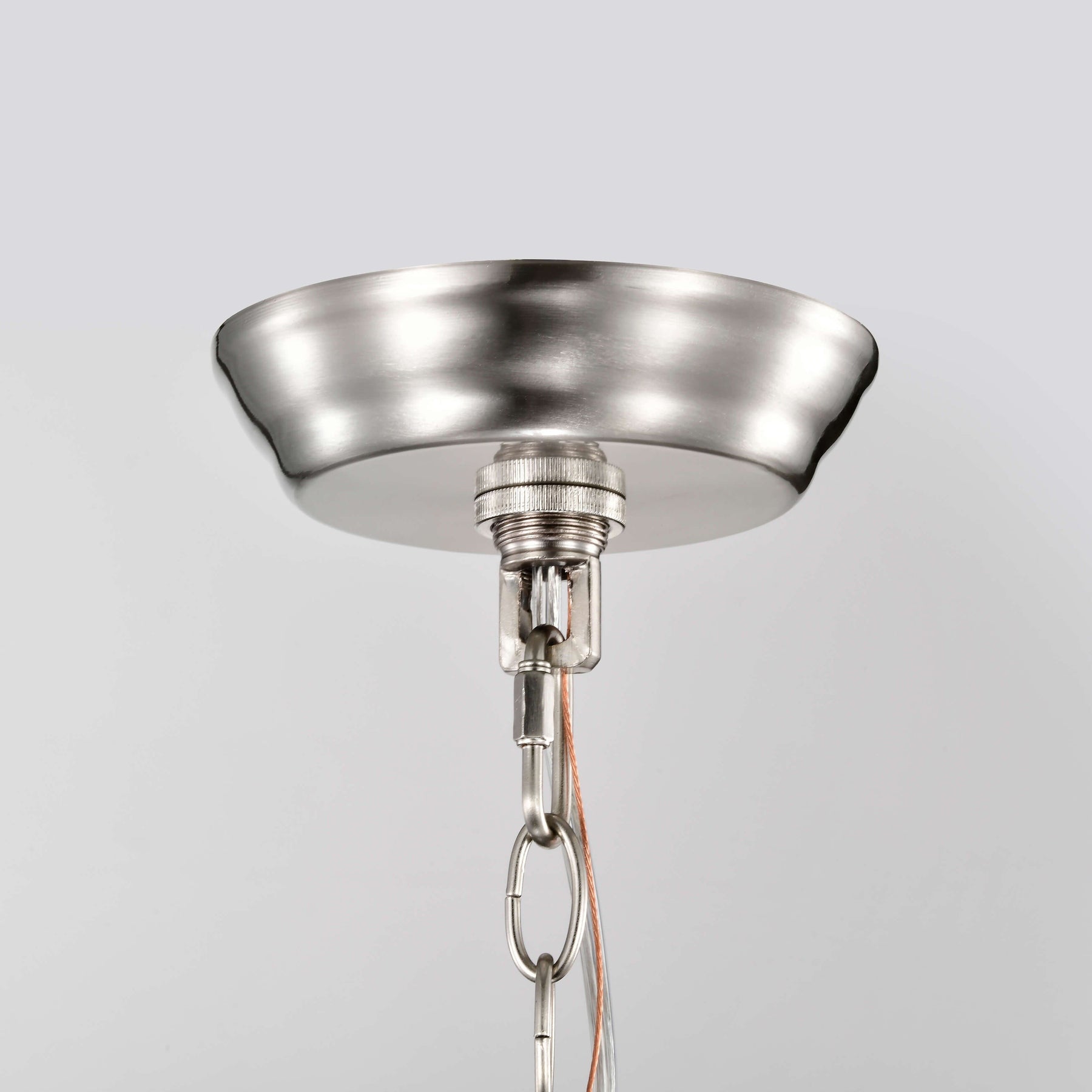 Luminaire : 20 pouces de diamètre x 18 pouces H ; Abat-jour : 20 pouces de diamètre x 8,5 pouces H ; Plaque de plafond : 5,1 pouces de diamètre x 1 pouce H ; Hauteur de suspension maximale (du plafond au bas du luminaire) : 59,4 pouces, qui peut être raccourcie.