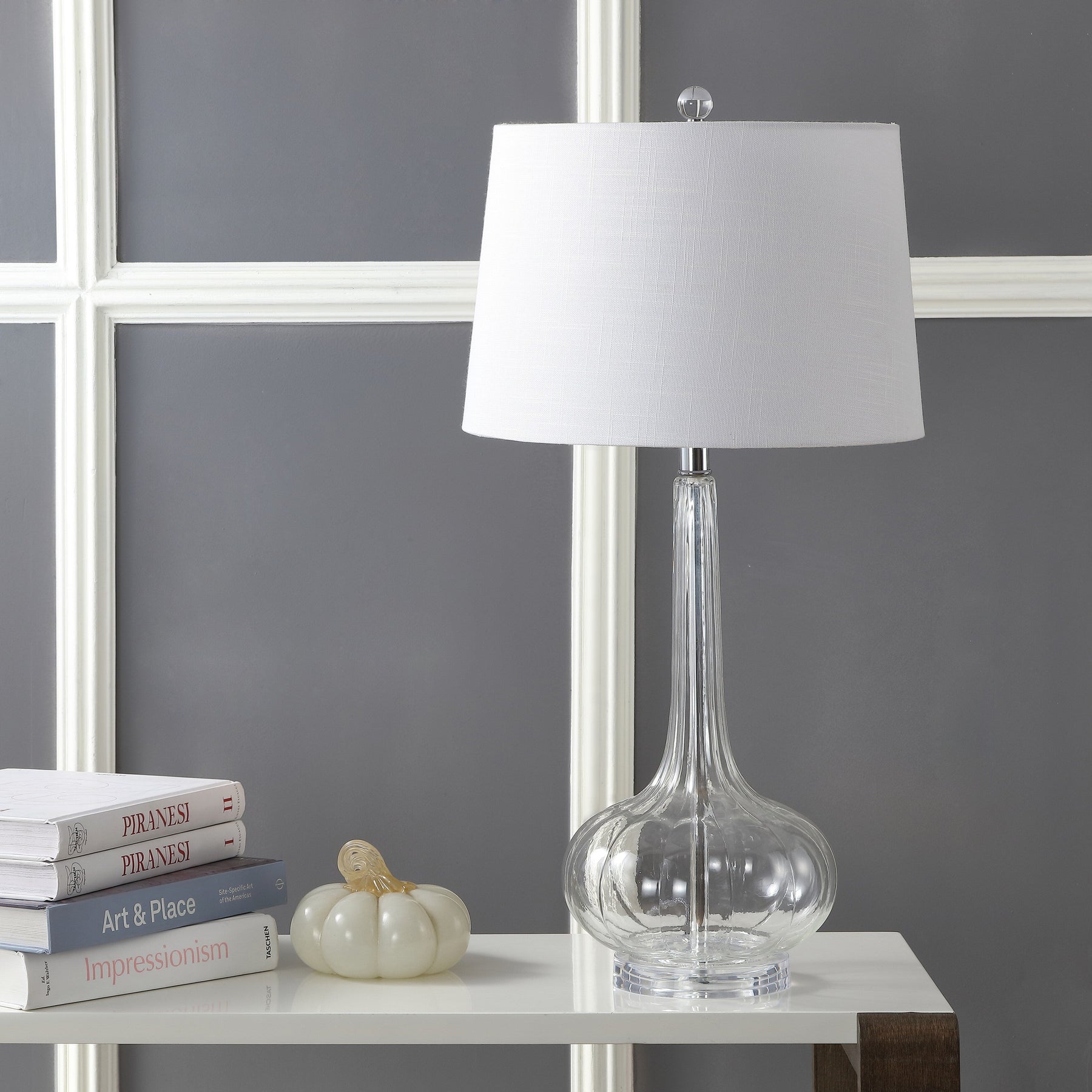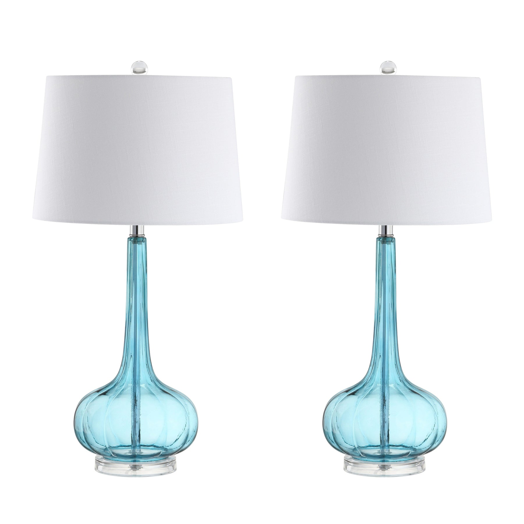 Ajoutez une touche de couleur à n'importe quelle pièce avec cet ensemble de deux lampes de table LED Diamante en verre rose de 73 cm, en forme de goutte, de JONATHAN Y. Leur style classique en verre et leur abat-jour tambour surdimensionné en font un choix polyvalent pour tous les espaces. Parfaites pour une lecture de chevet ou comme pièces maîtresses sur une console, ces lampes sont dotées d'un cordon gainé de soie et d'ampoules LED écologiques.