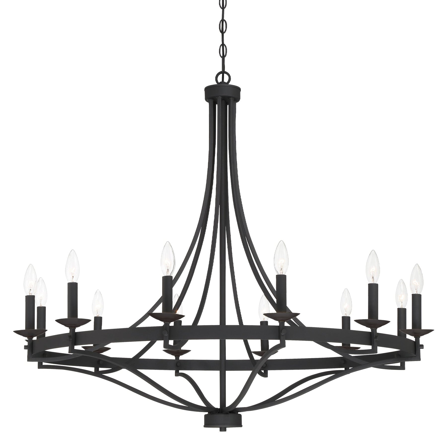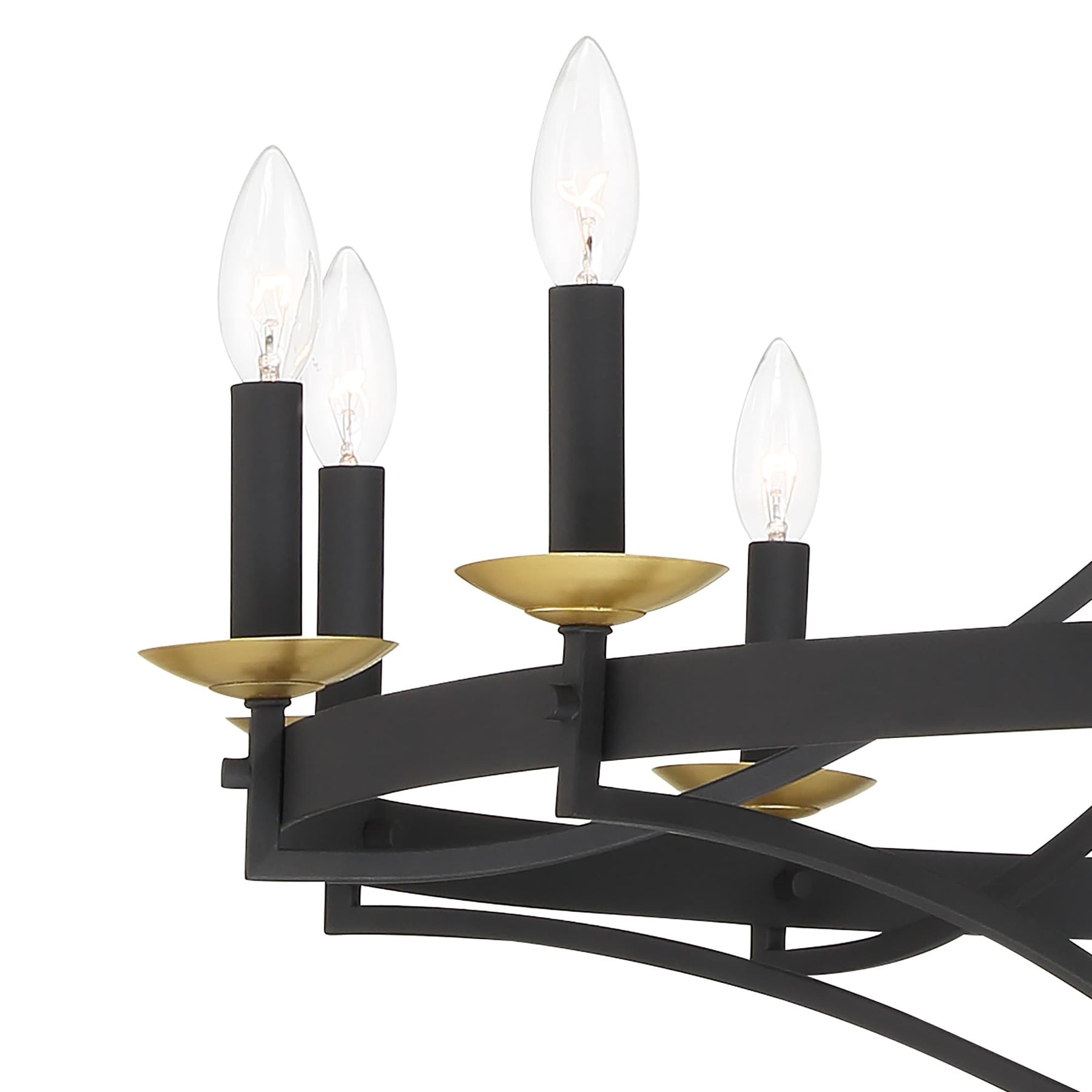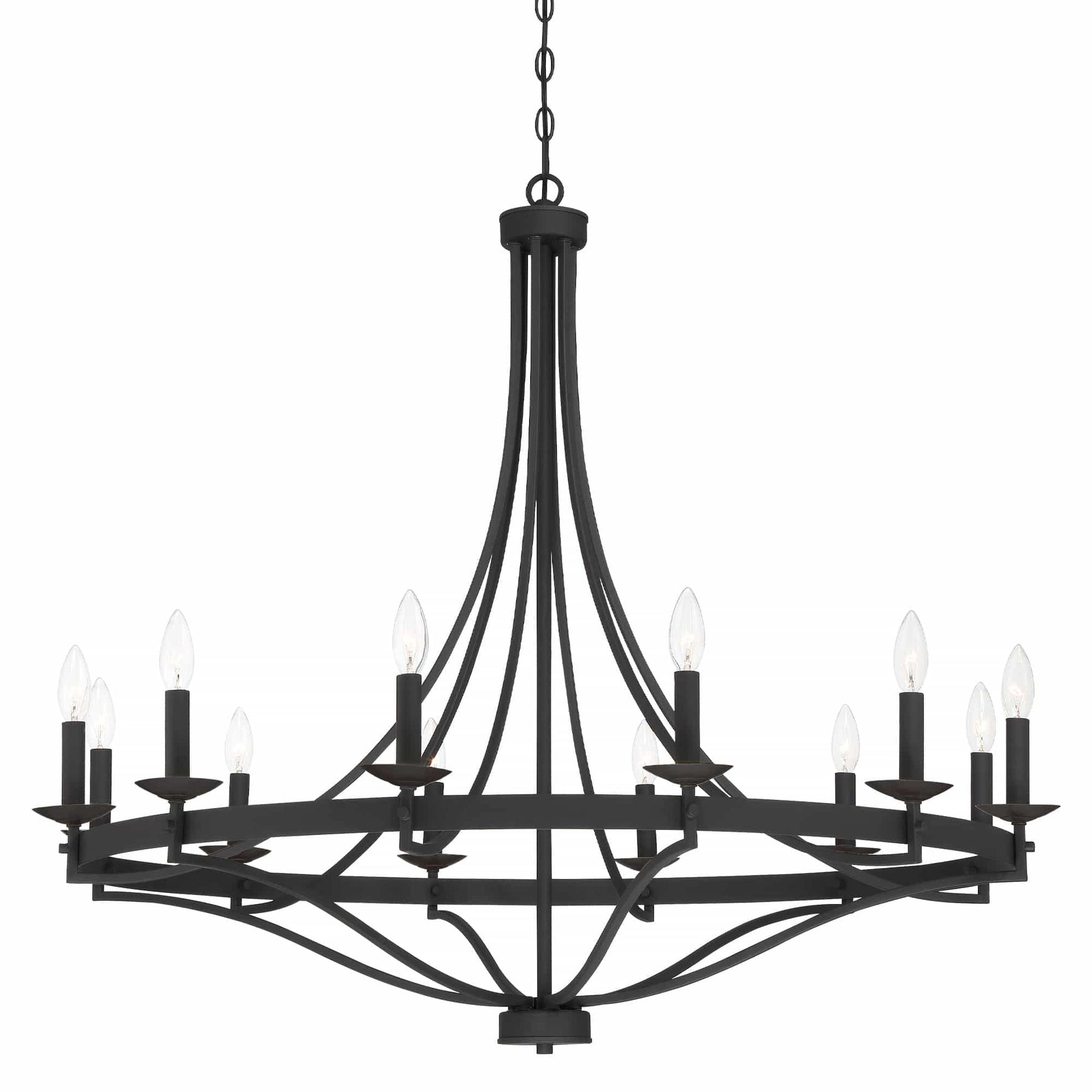 Lustre Empire à 12 lumières de style ferme moderne Fidenza avec roue de chariot et UL - D40&