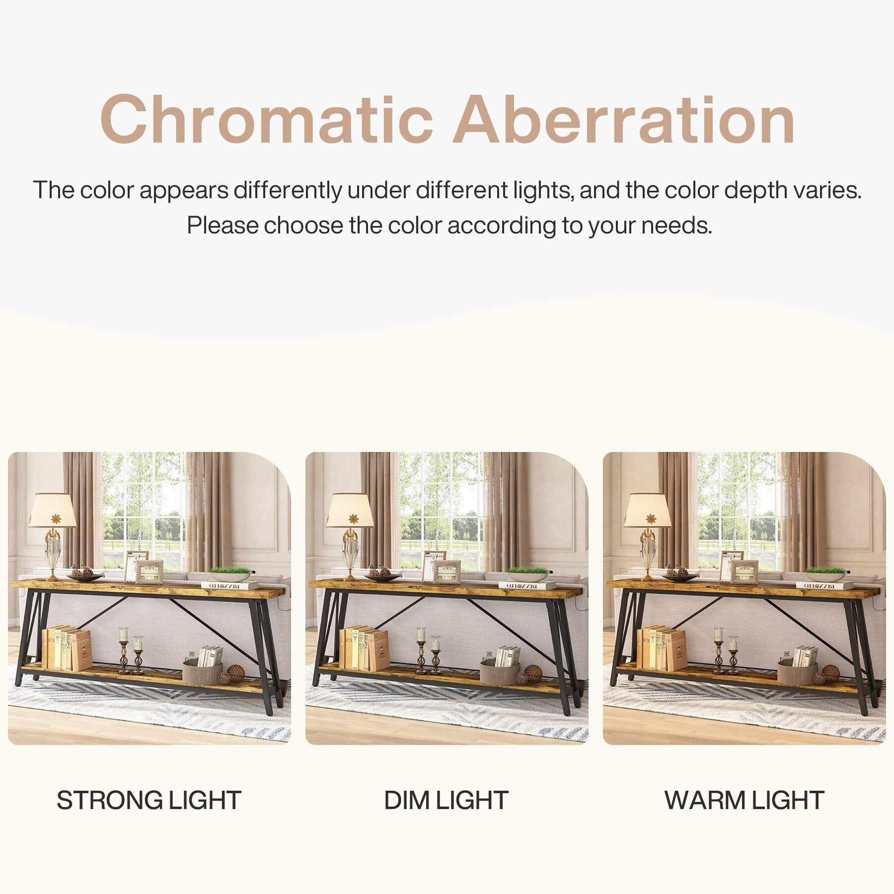 Ajoutez une touche de style industriel rustique à votre salon ou à votre entrée avec cette table de salon classique extra-longue de 180 cm. Ses deux étagères offrent un vaste espace de rangement pour exposer vos livres préférés, vos photos encadrées ou vos œuvres d'art. Sa structure triangulaire robuste et ses épais pieds en métal garantissent une capacité de charge allant jusqu'à 104 kg, tandis que des patins réglables maintiennent la table à niveau sur un sol irrégulier. L'assemblage est facile grâce aux pièces marquées et aux instructions fournies.