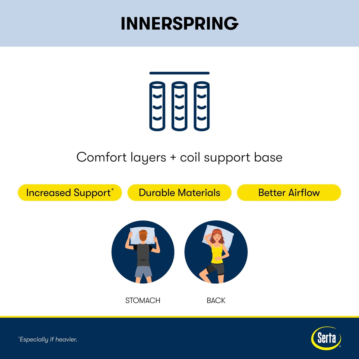 • La mousse PillowSoft® Aire Soft offre un amorti amélioré pour un confort exceptionnel et favorise la circulation de l'air grâce à sa conception unique et légèrement ondulée