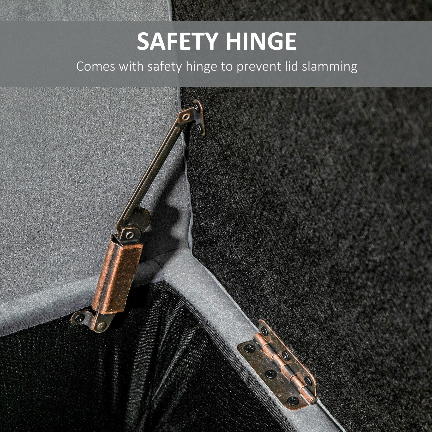 Ajoutez une touche de glamour et de fonctionnalité à votre intérieur avec ce banc ottoman de rangement capitonné de HOMCOM. Son tissu polyester au toucher velours et ses accoudoirs roulés apportent élégance et confort à n'importe quelle pièce, tandis que son assise rabattable offre un grand espace de rangement pour livres, jouets ou couvertures. Ses pieds robustes en bois d'hévéa garantissent stabilité et durabilité. Assemblage requis pour ce meuble élégant, idéal pour votre entrée, votre salon ou votre côté fenêtre.