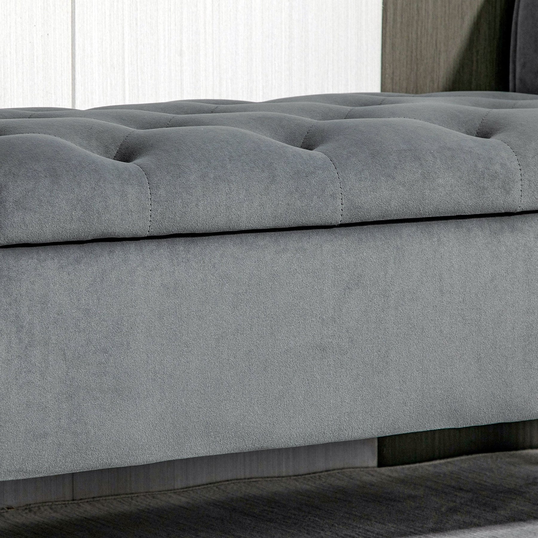 Banc ottoman de rangement capitonné à boutons HOMCOM, banc de lit rembourré avec accoudoirs roulés pour chambre, salon ou couloir