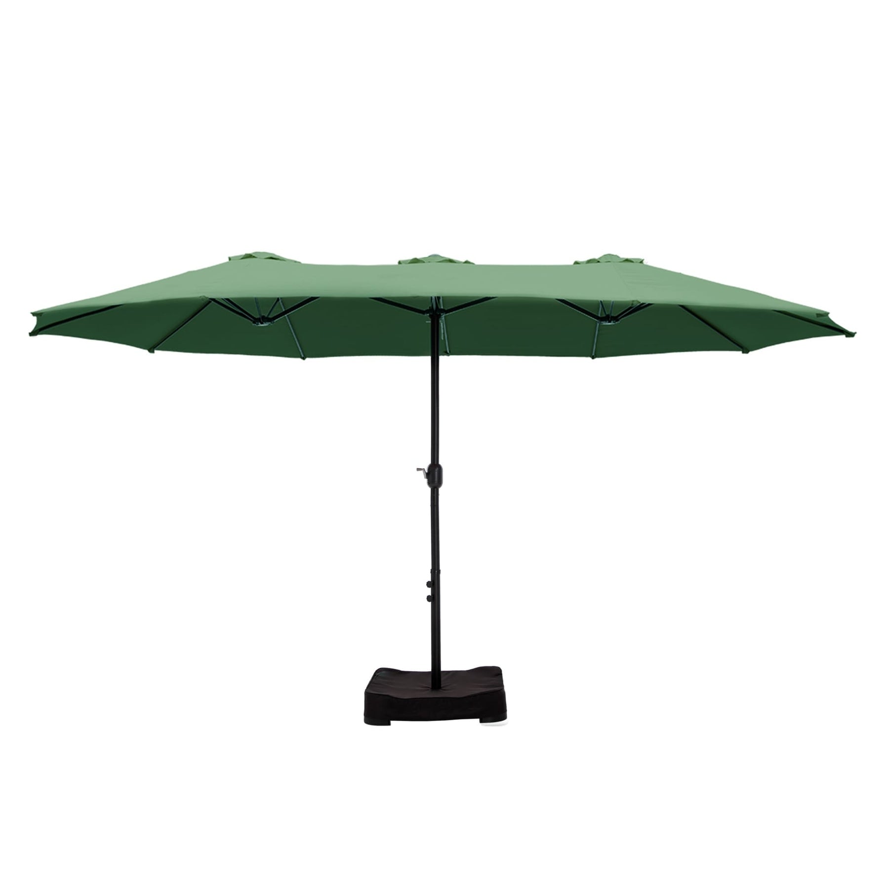 Base de parasol incluse : Base transversale, deux sacs de sable (en tissu Oxford 300D) et une housse de protection (en polyester 160G). Poids de sable recommandé : 45 kg par sac.