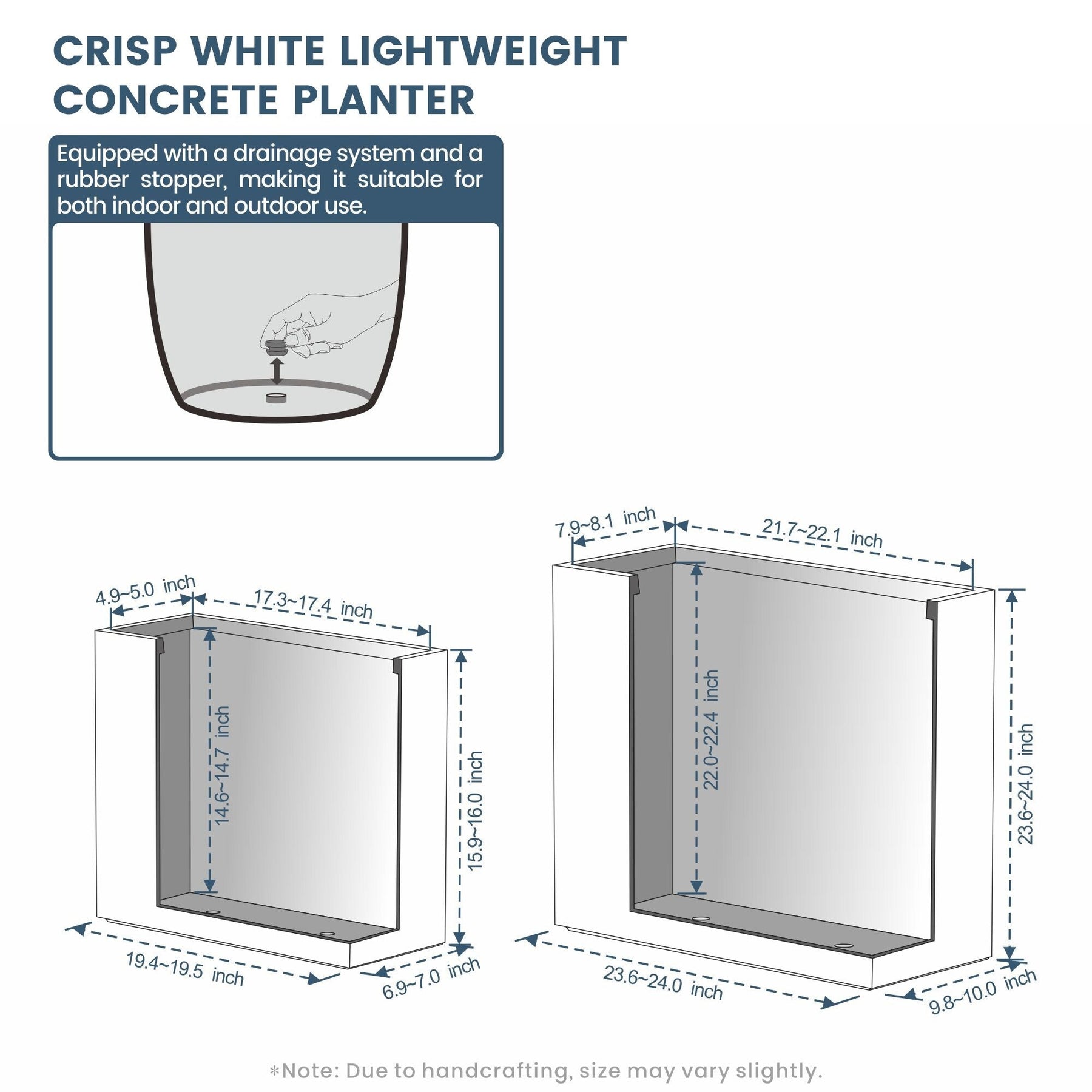 * Résistant à la rouille : sans pièces métalliques à craindre, ces jardinières carrées en ciment résistent à la rouille, garantissant un aspect impeccable quelles que soient les conditions météorologiques