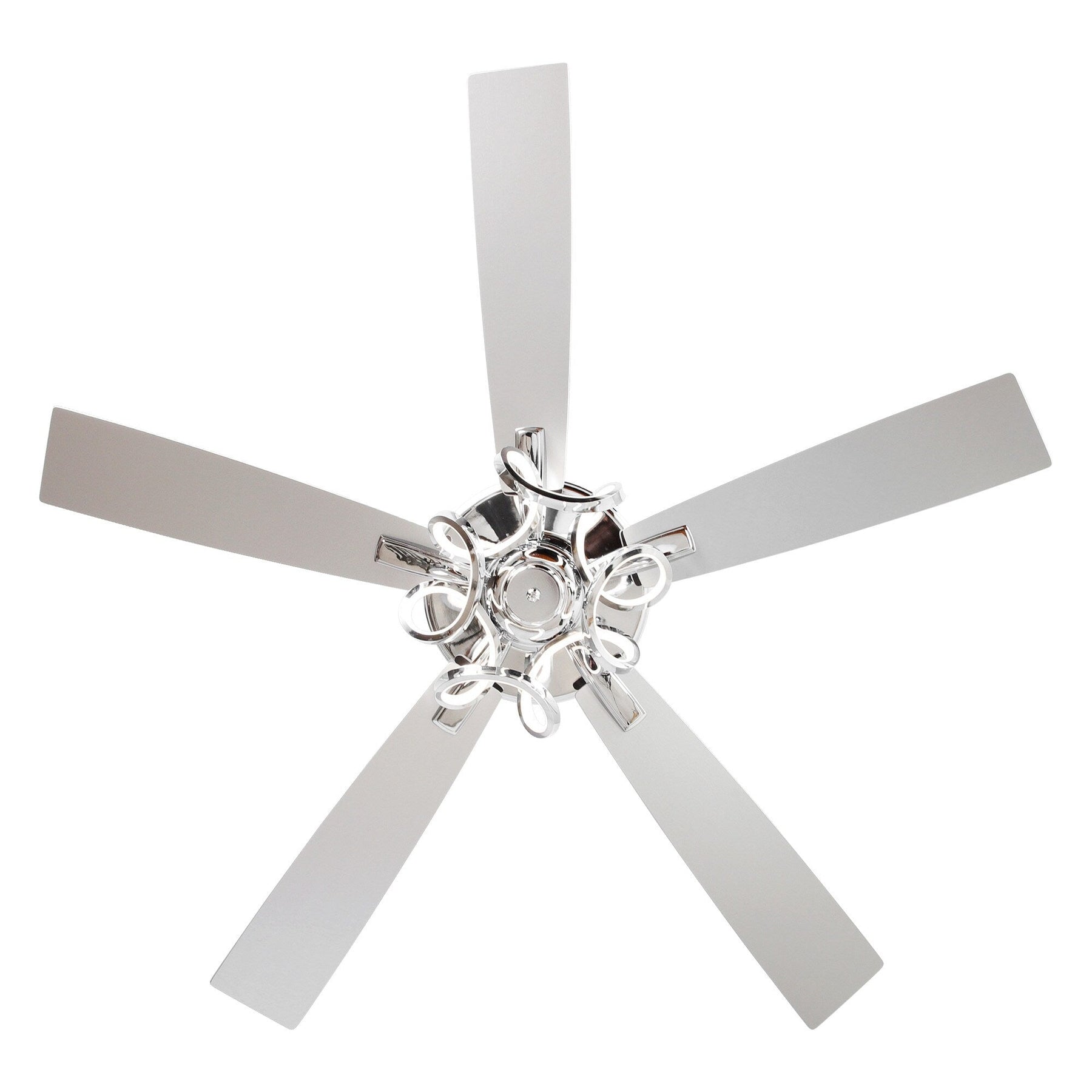 Luminaire finition chromée avec 5 pales en bois réversibles pour argent et marron foncé