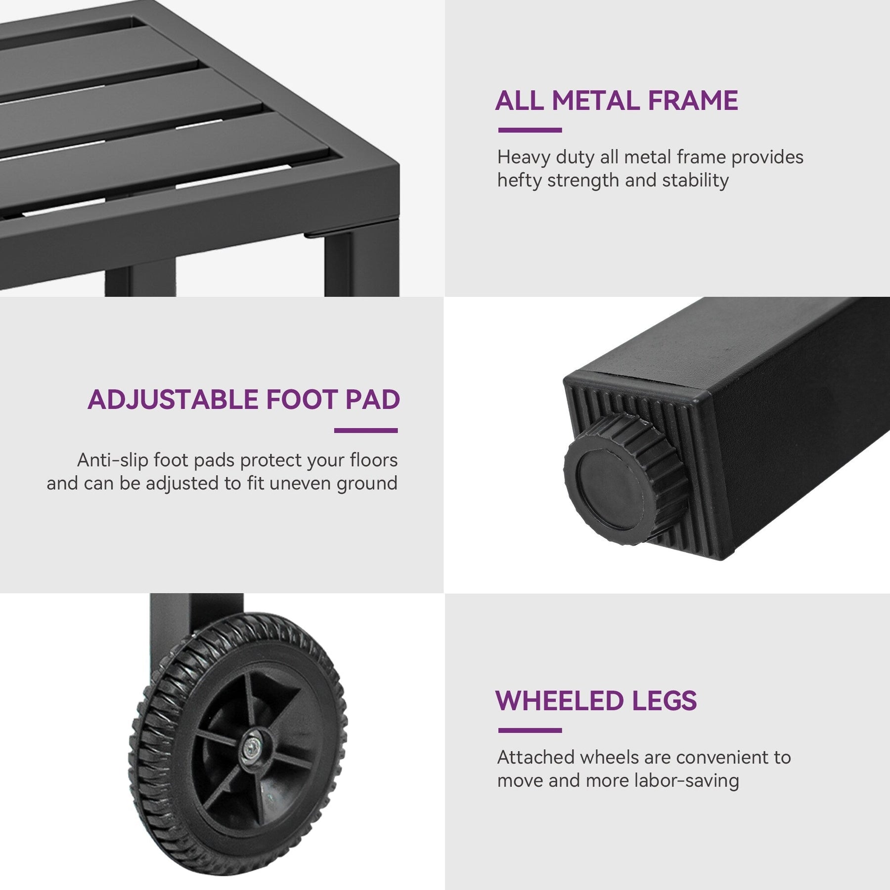 Durable : Grâce à sa construction en métal, il résiste aux intempéries et peut être utilisé toute l'année et dure beaucoup plus longtemps que les alternatives en bois ou en plastique.