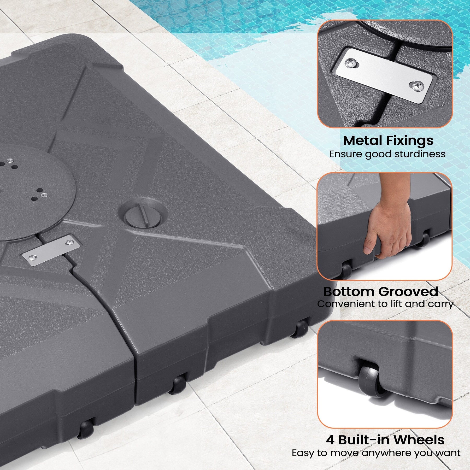Sécurisez votre espace extérieur et donnez un aspect 3D grâce à ce pied de parasol déporté de 100 kg avec roulettes de Pellebant. Ce poids peut être rempli d'eau ou de sable pour plus de stabilité et de soutien. Il empêche votre parasol de s'envoler par temps venteux.
