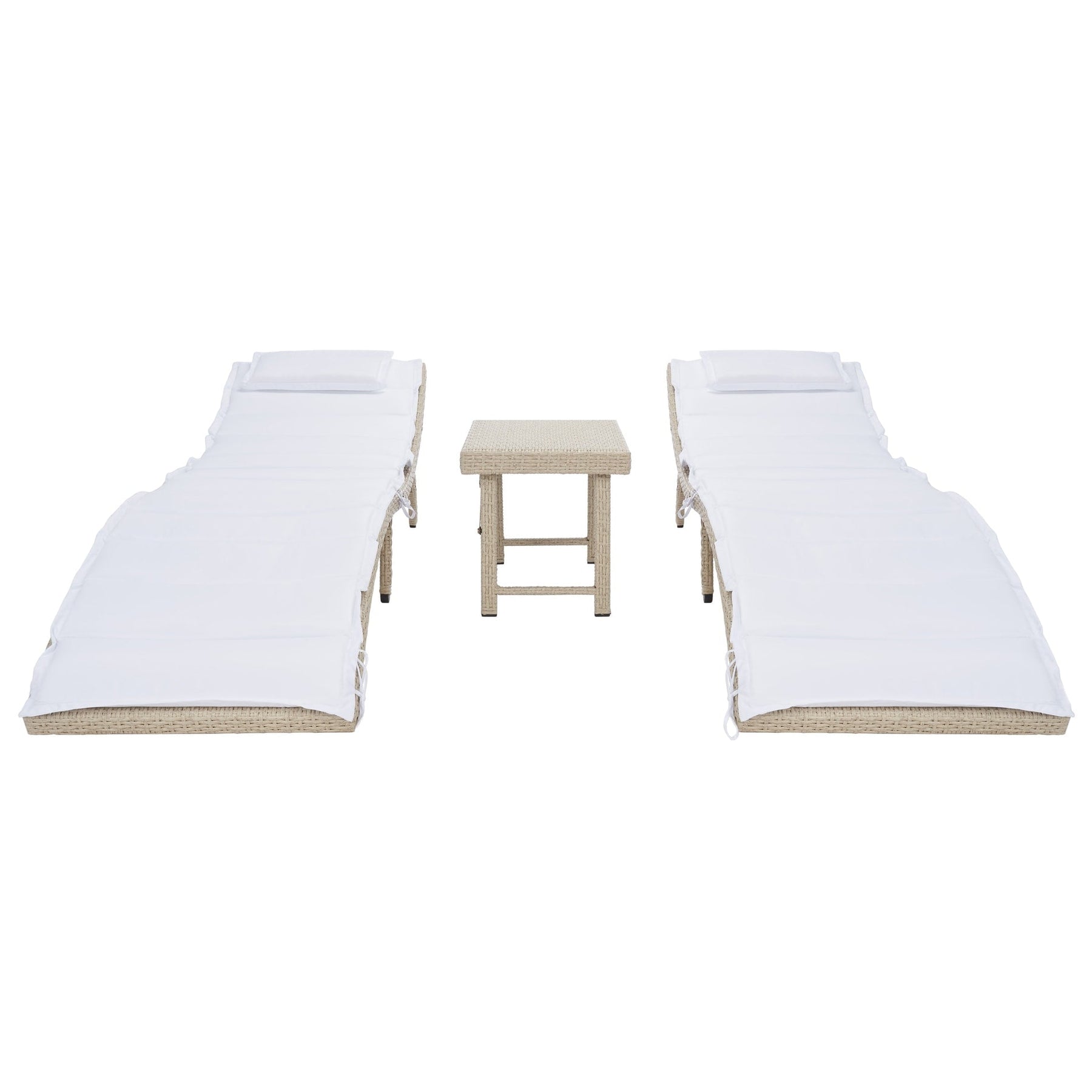 Profitez du soleil d'été avec cet ensemble de 3 chaises longues. Les silhouettes élancées et douces des deux sièges en rotin synthétique Carew sont parfaitement surmontées de coussins blancs moelleux pour une détente optimale. Une table d'appoint assortie est idéale pour des boissons colorées ou des fruits frais.