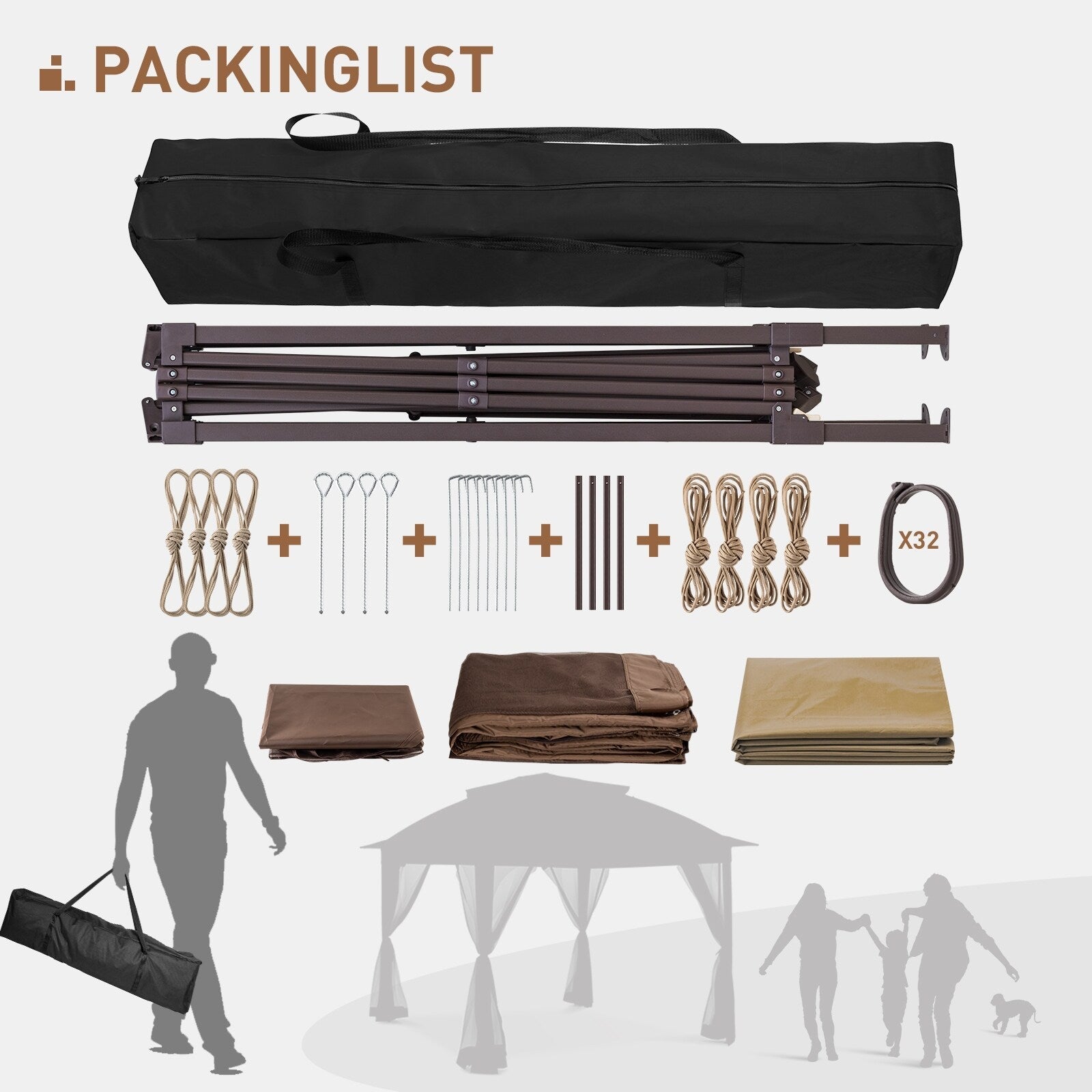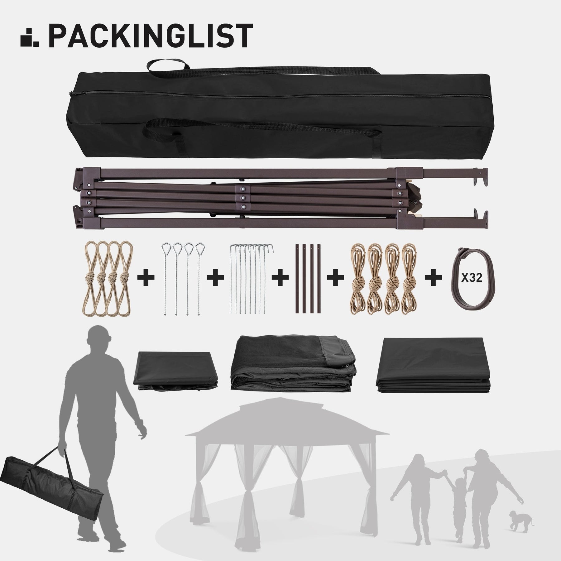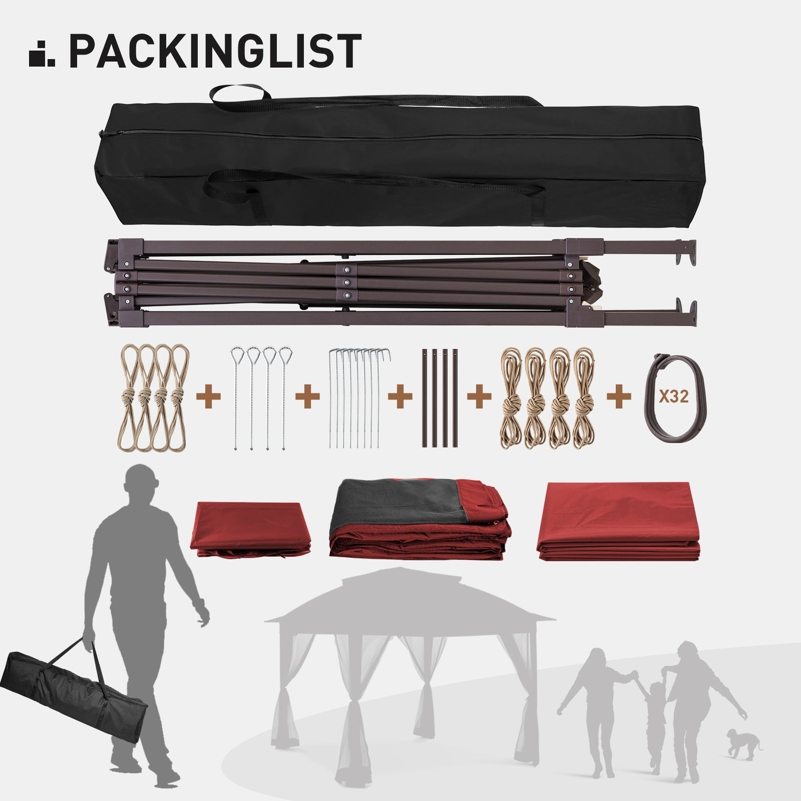 • Toit ventilé à deux niveaux - Ce gazebo est doté d'un toit à deux niveaux conçu pour vous offrir un espace confortable et aéré, vous évitant ainsi une sensation d'étouffement, même en été. L'avant-toit prolongé est soigneusement fini pour éviter l'accumulation de pluie. Ses dimensions de 3,3 m x 3,3 m offrent une couverture de 11,8 m² et peuvent accueillir jusqu'à 6 personnes.